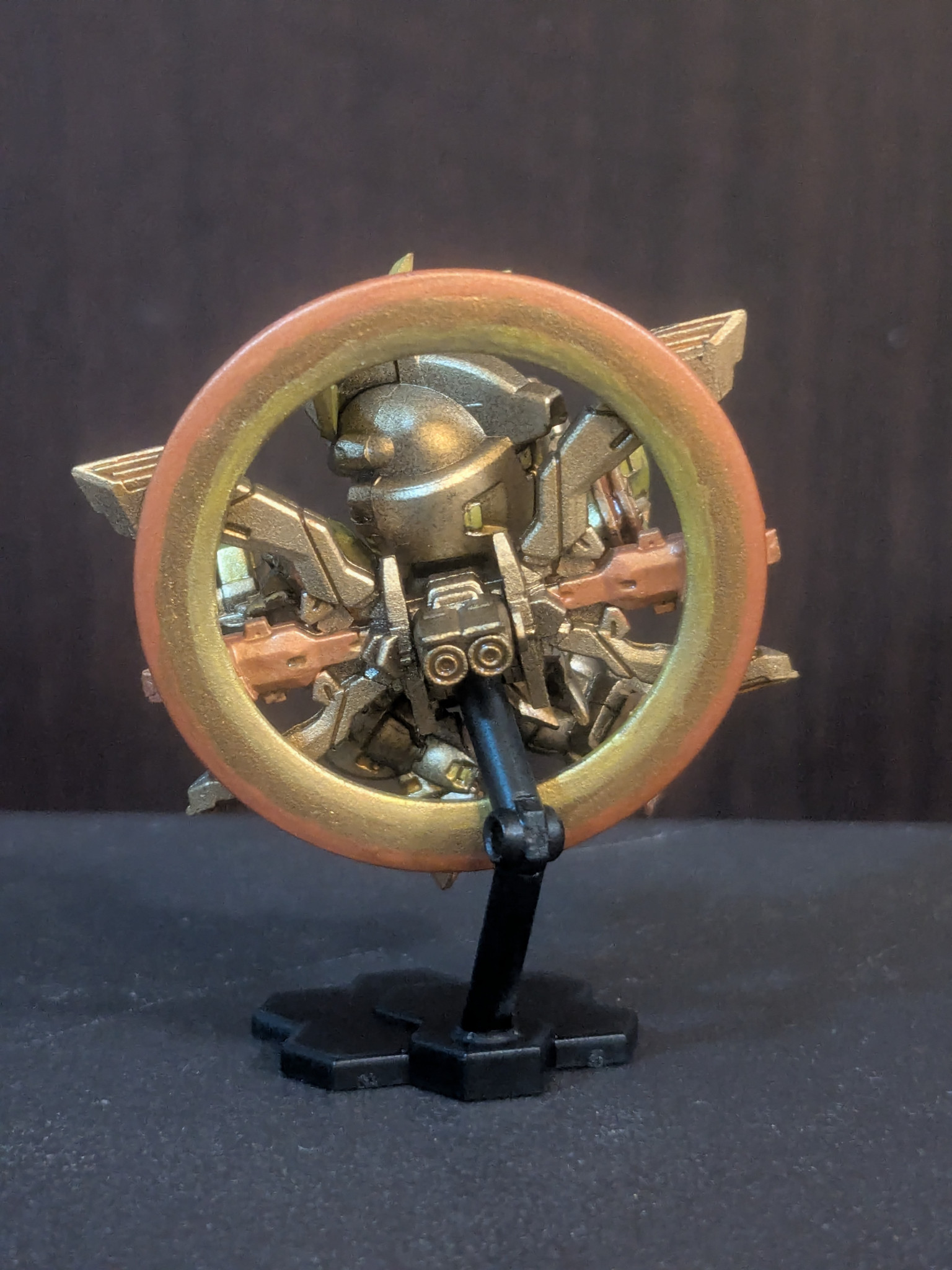 明るめの金はポスカ、元が赤い部分はラッカーのゴールドに蛍光レッドを適当に混ぜています。
