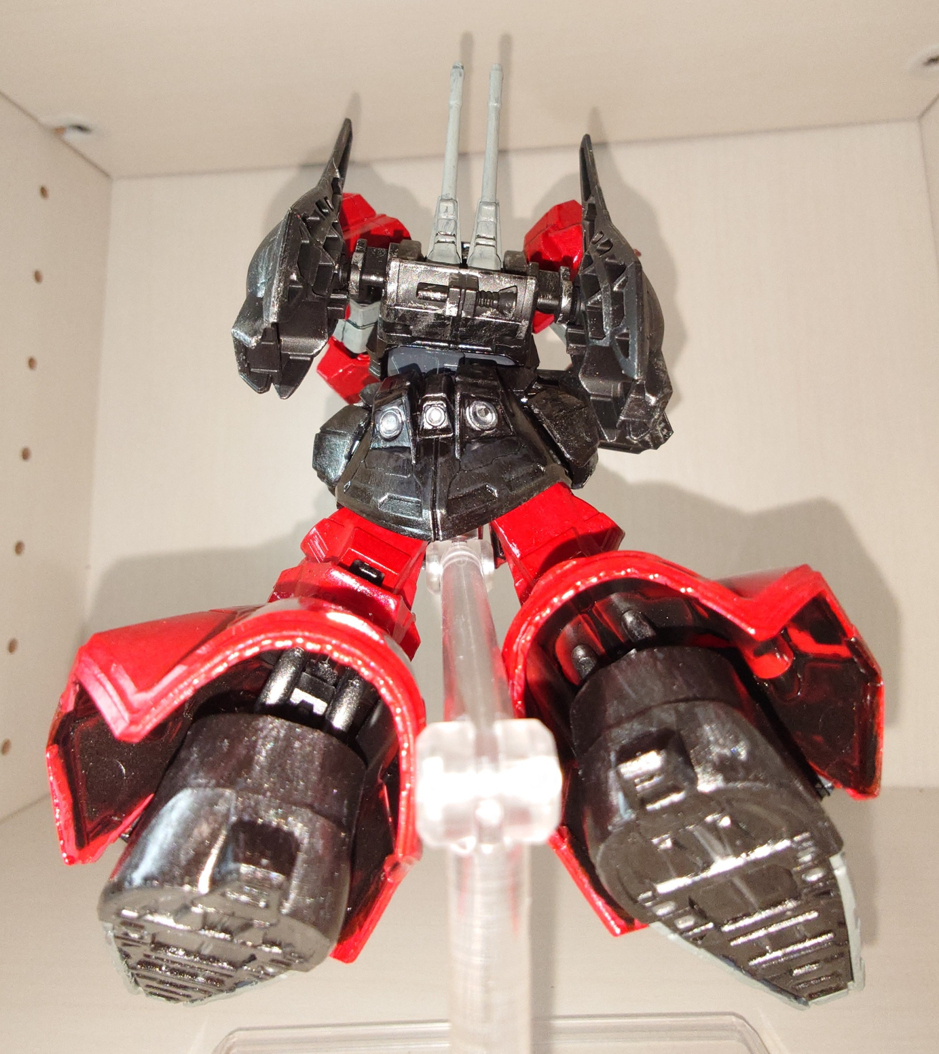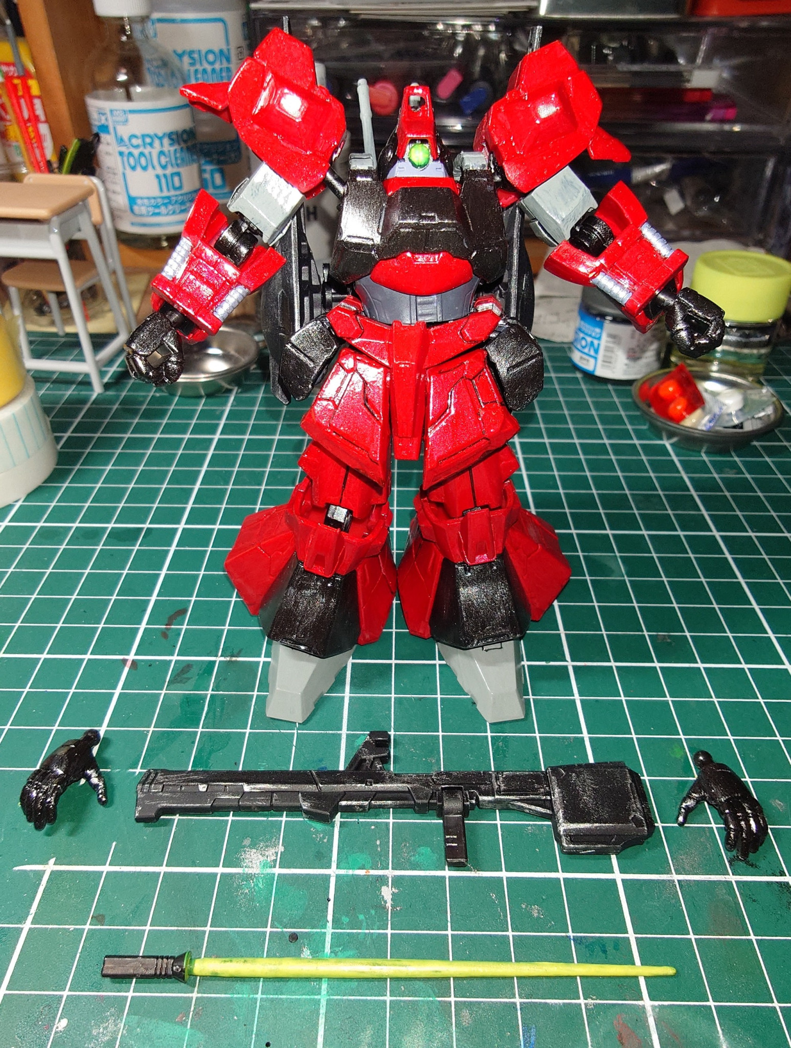 塗料はアクリジョン 赤い部分はベースレッド→メタリックレッド→クリアーレッド→光沢トップコート 黒い部分はアッセンブルカラーのベースブラック→メタルブラック→光沢トップコート グレーの部分はベースグレー→軍艦色(1)