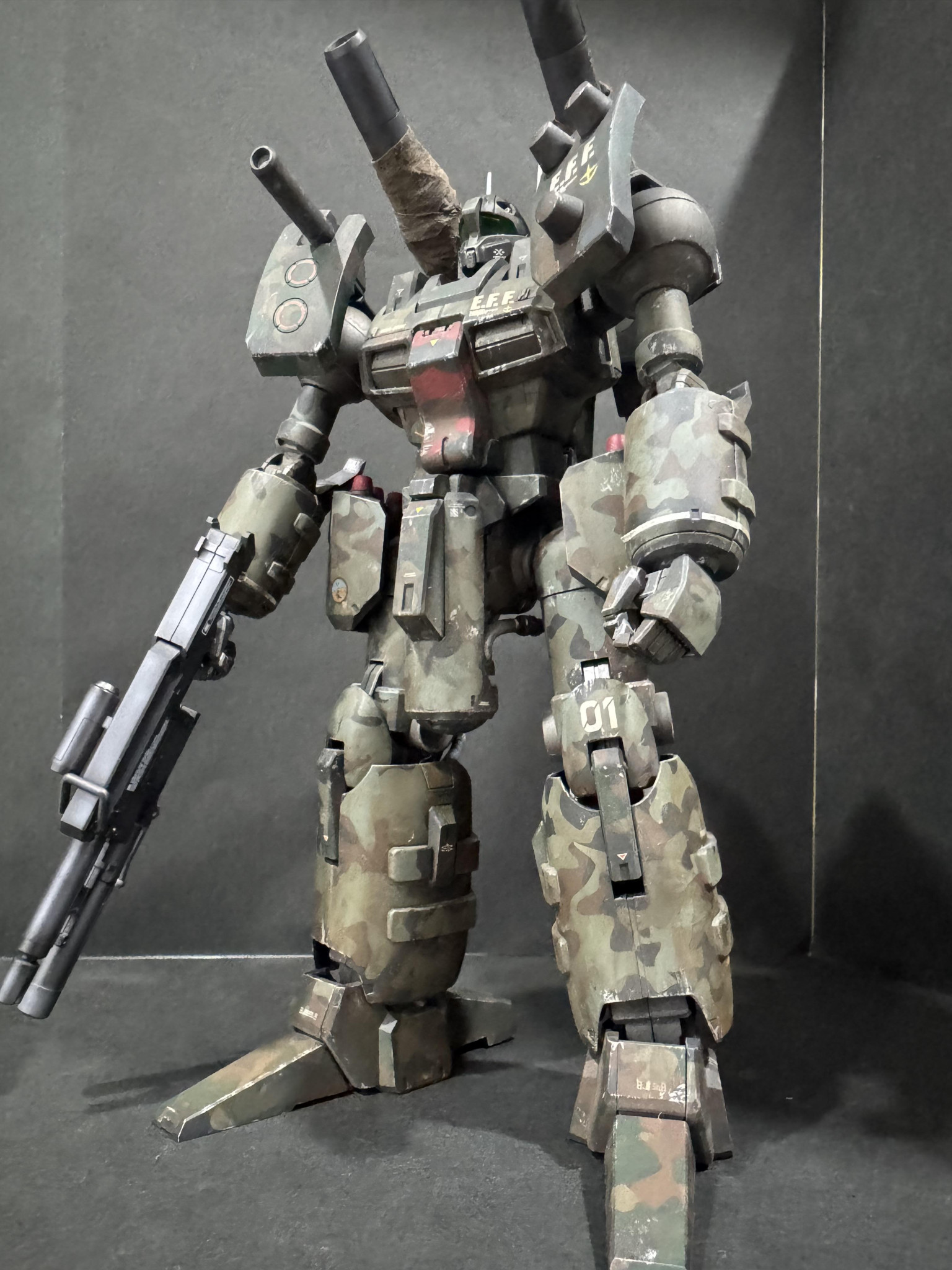 RE/100 MSA-005K ガンキャノン・ディテクターをやってみたかった迷彩パターンで塗装し、汚してみました。
