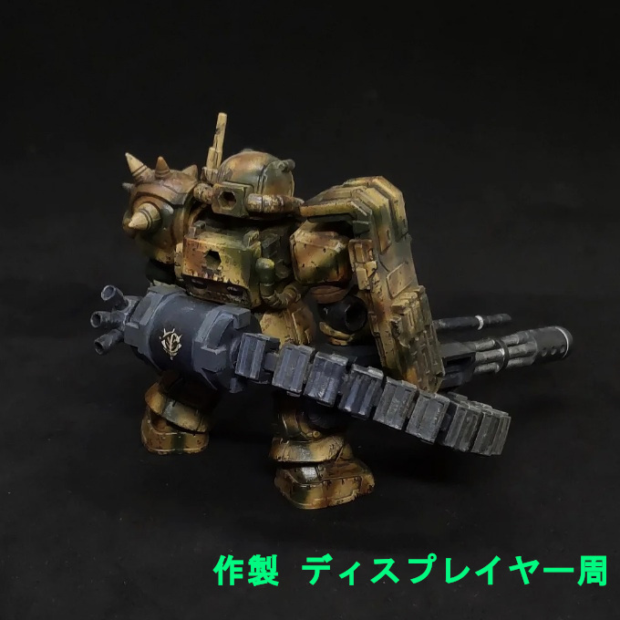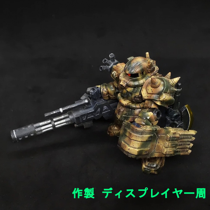 SDで、小さくカワイイのに、迷彩のおかげで、なぜかカッコいいそんな作品ですね。ガトリングの影響もあって重厚感を感じます。