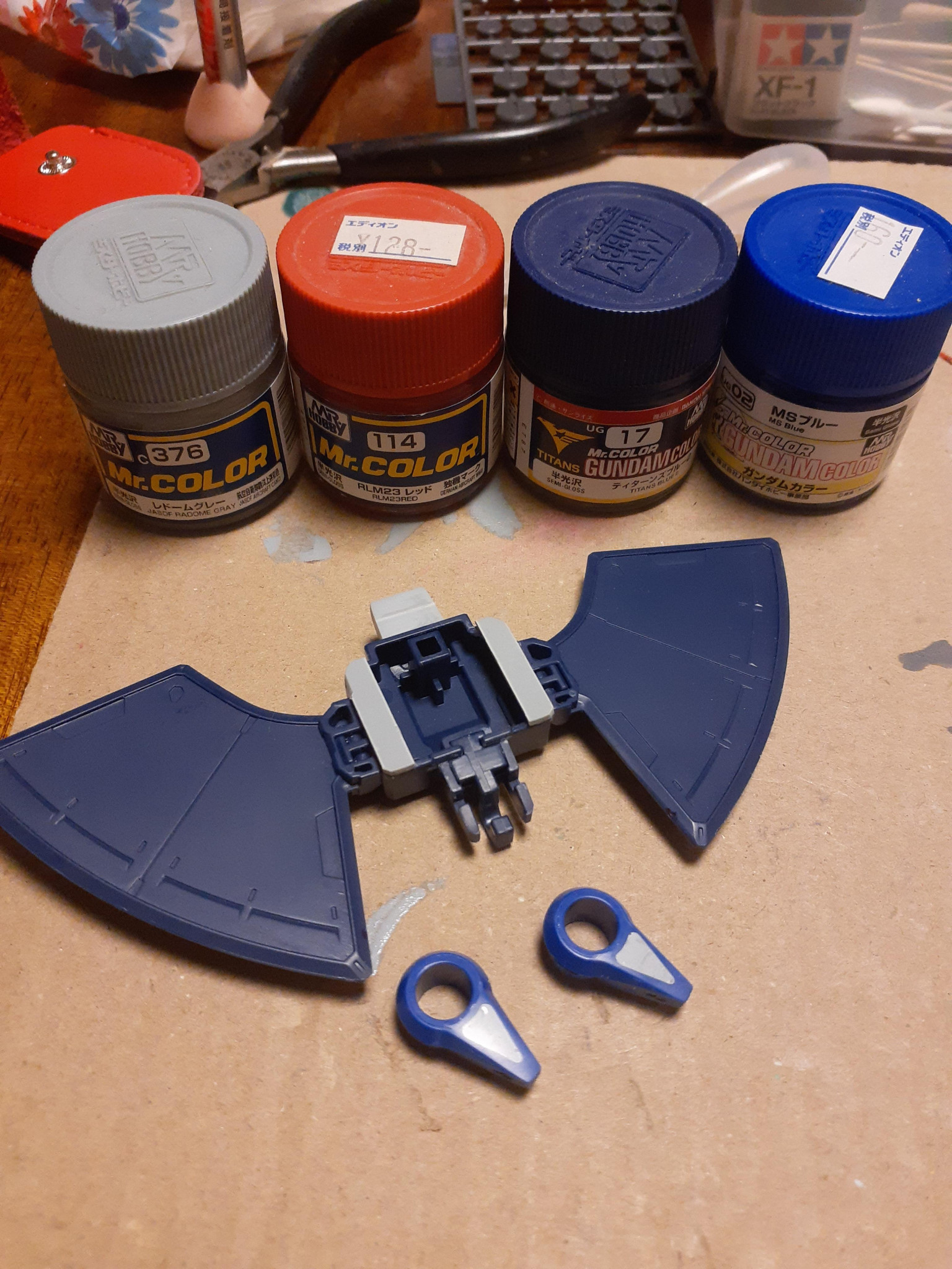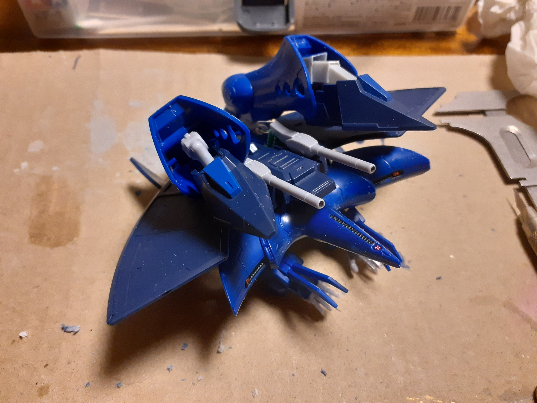 探した資料に「MA時、武器は背面のウェポンラックに装備する。」とあったので自分の解釈でランドセルにネオジム磁石でセットしてみました。あと背中の砲口も開けています。