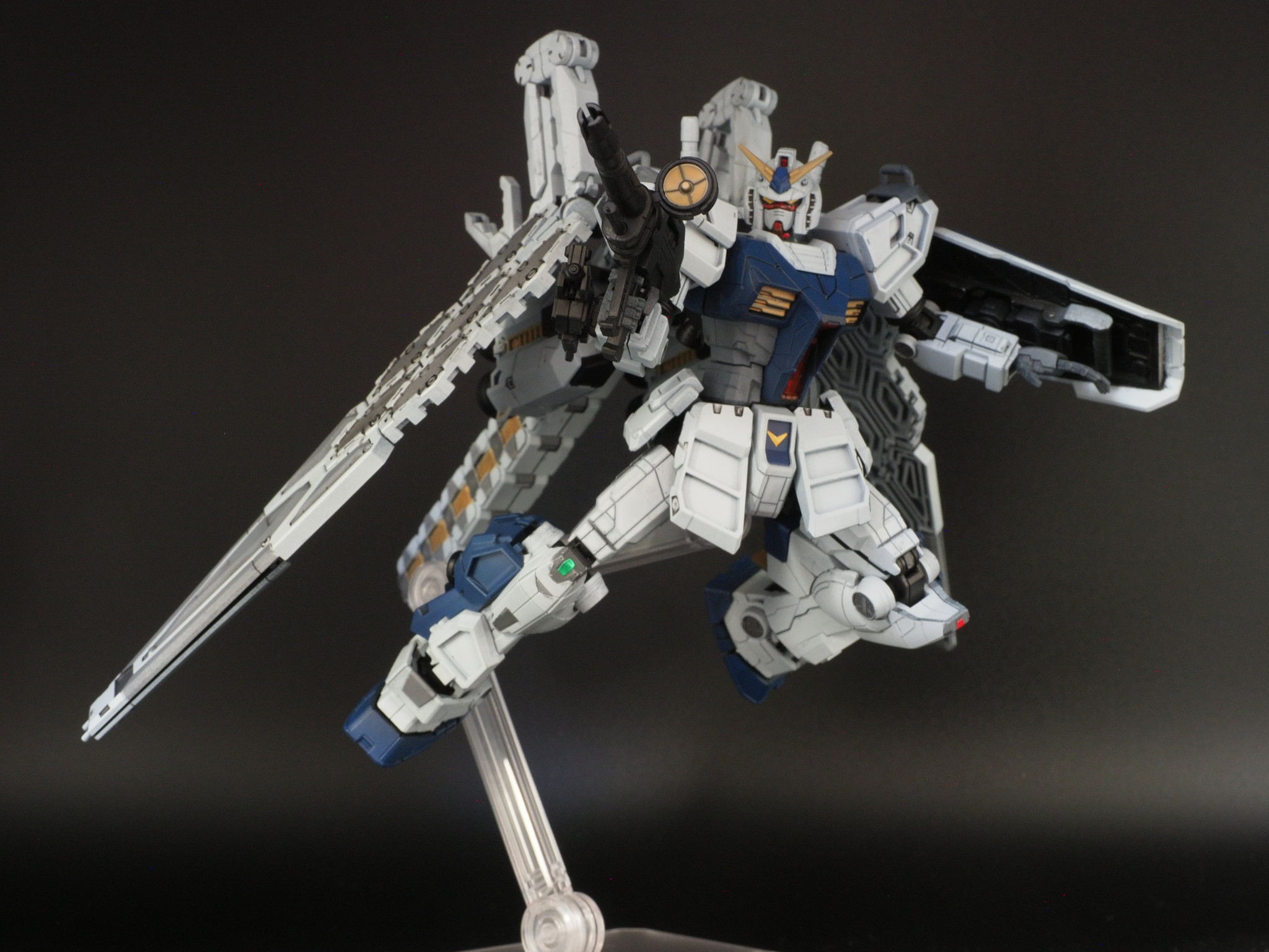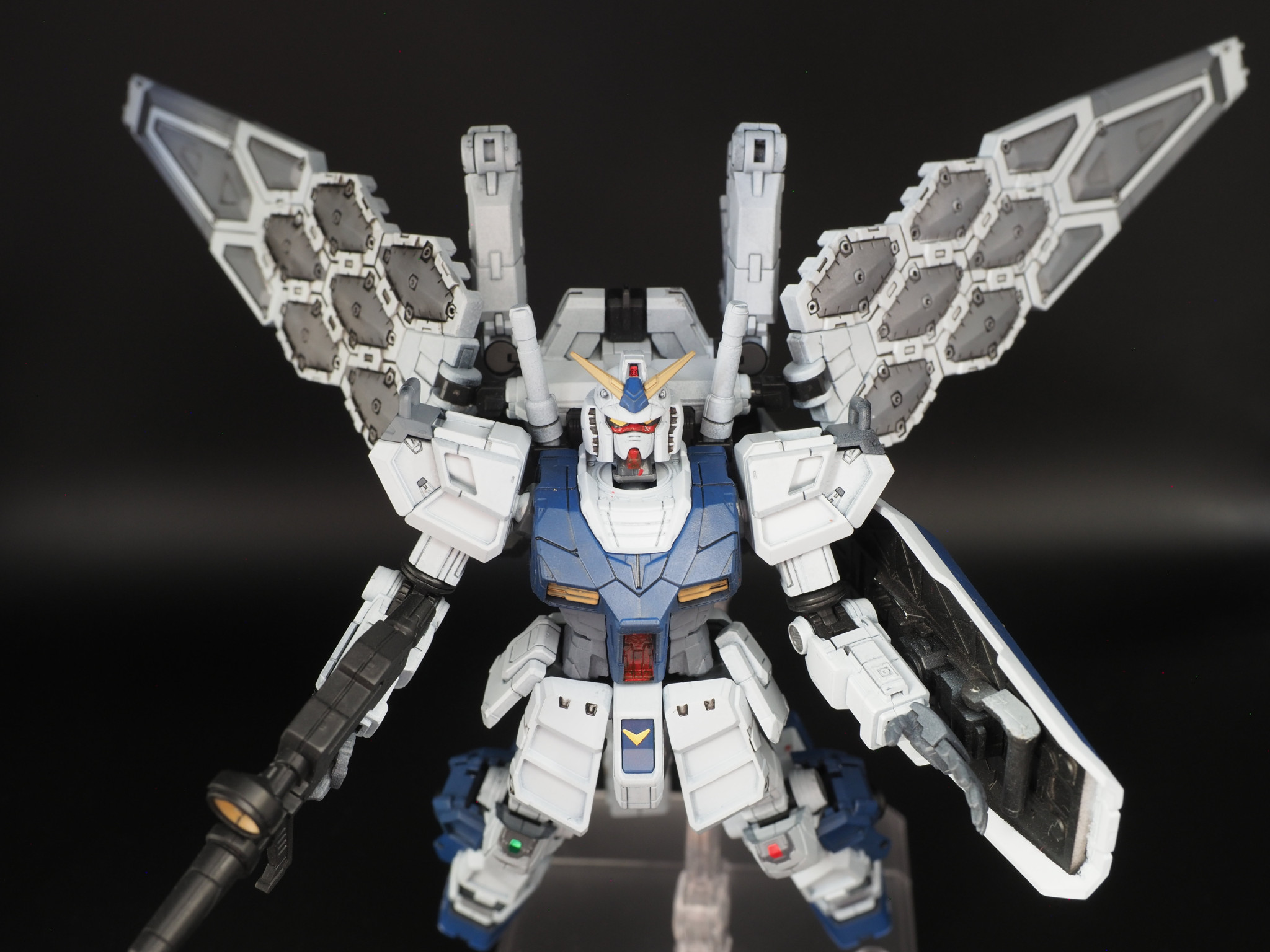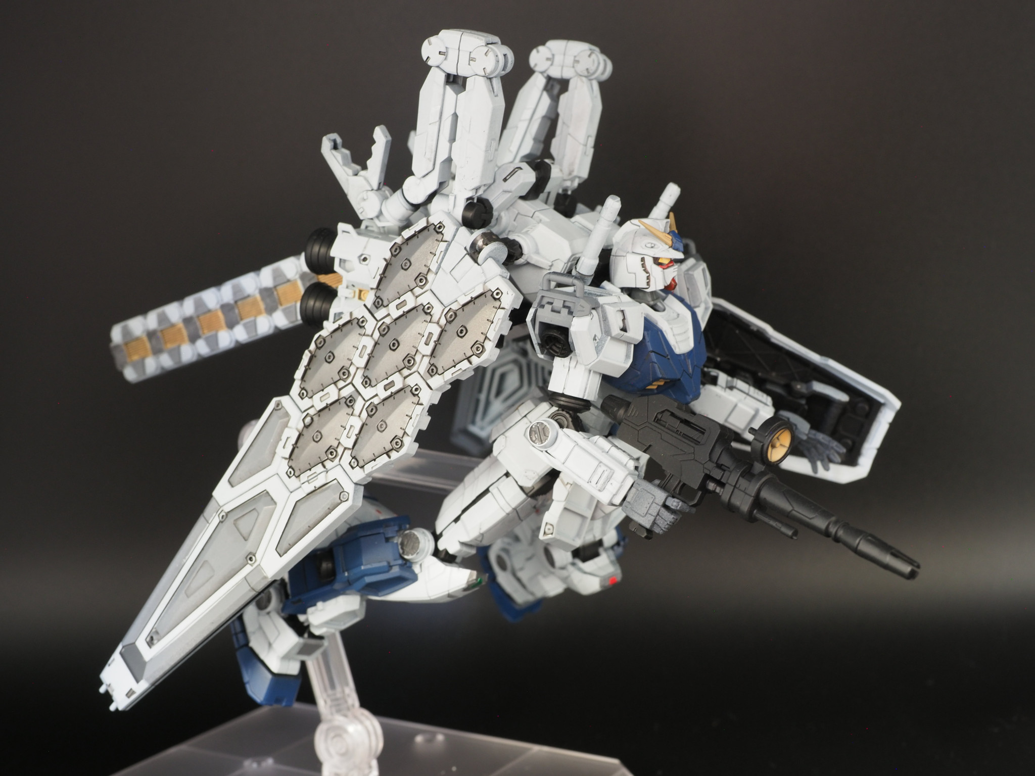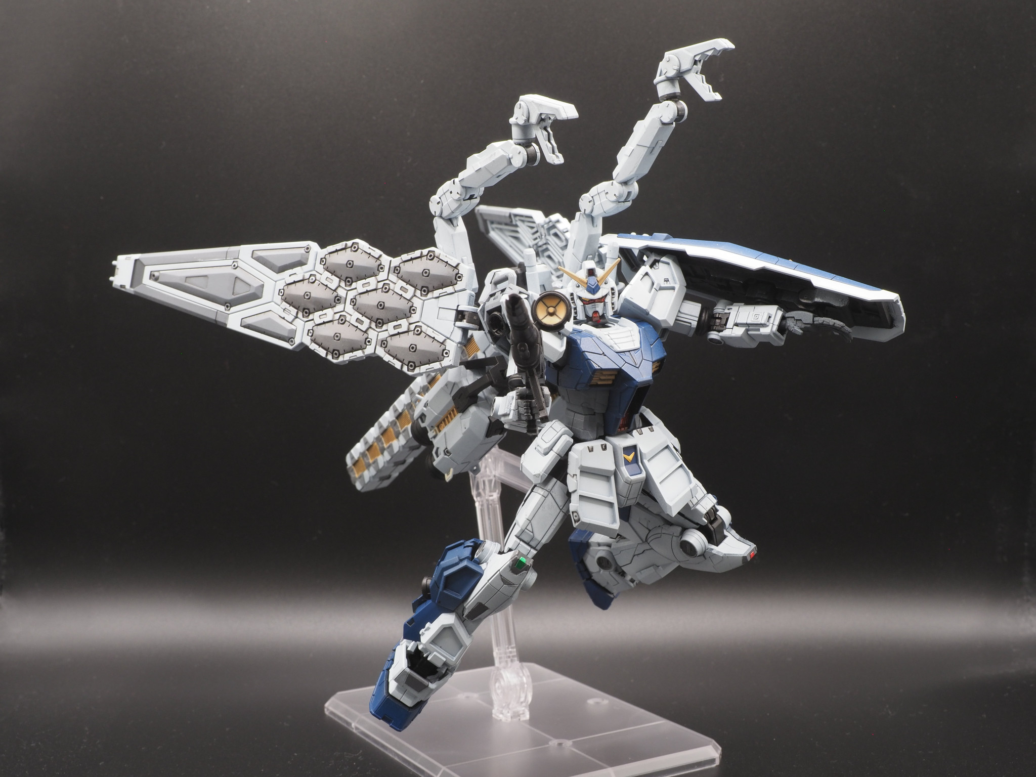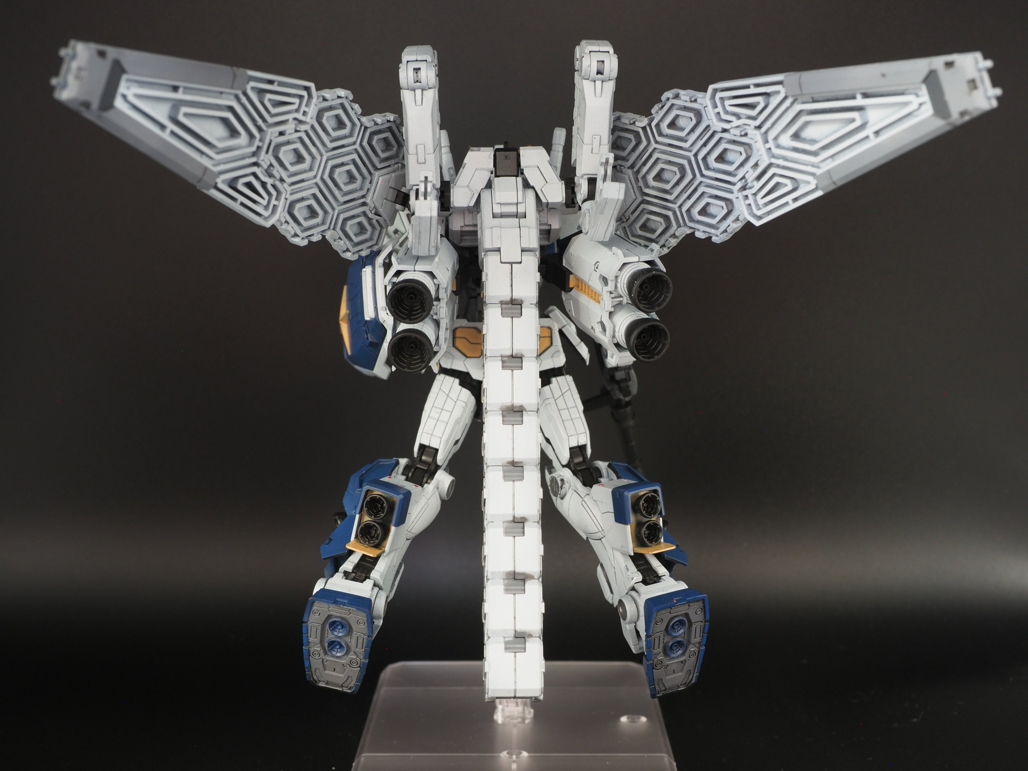 パーツの色分けが細かなRGなどと違って、一括成形パーツの塗り分けが大変でした。特にバックパップの”尻尾”が大変でした。。。