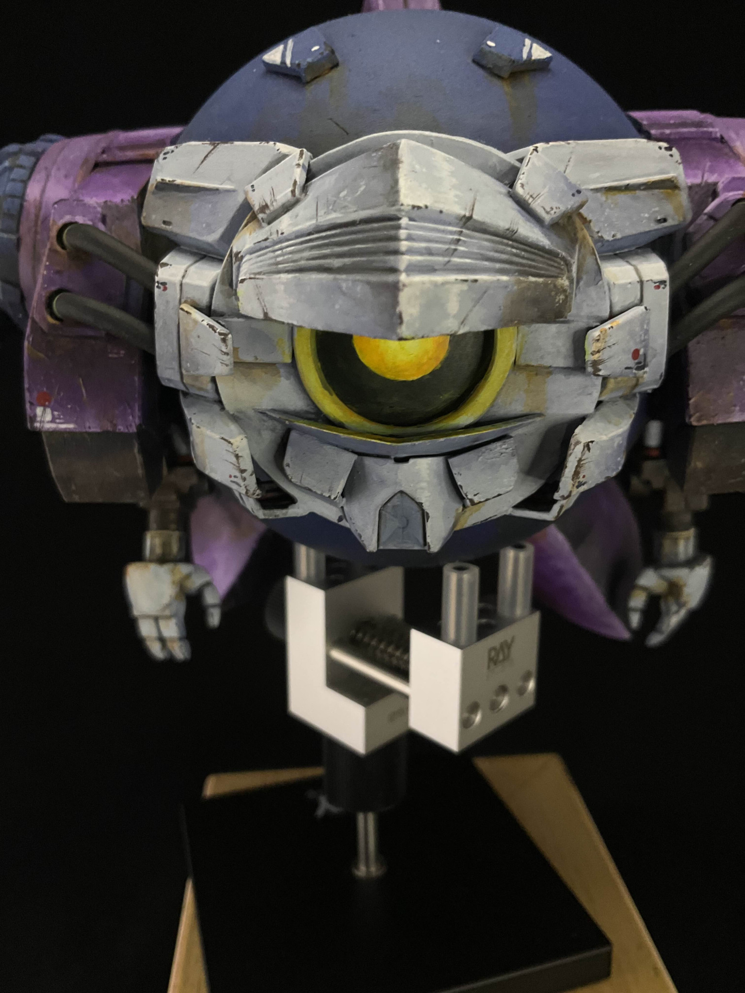 I said this was kind of silly but also it looks a bit intimidating looking straight on. I didn't build a proper base for this , its just sitting on top of my vice in these photos, but since then I've attached it to a base in a flying pose.