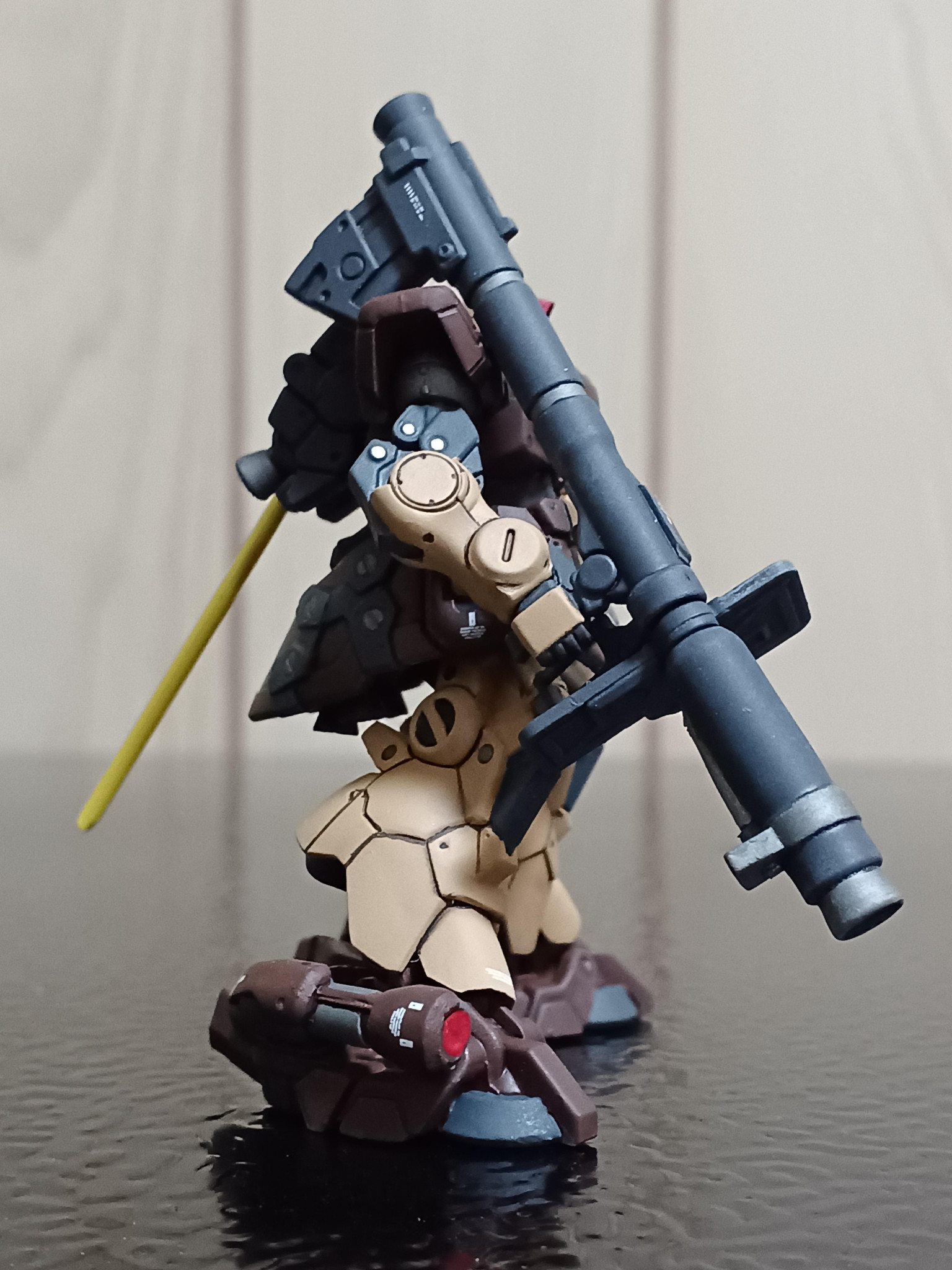 ようやくパラスアテネの作業を再開し、筆塗りとデカールぐらいまでは漕ぎ着けましたが、もう暫くかかりそうなので、つぶやきでお話させて頂いた完成品ストックの中からドム・トローペン(ユニコーンver.)を投稿させて頂きます🙇