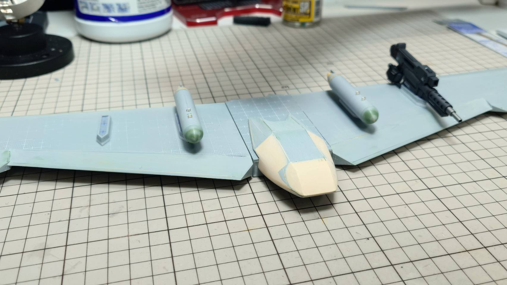 レイダー制式仕様のメインともいえる副翼をプラ板、パテで制作