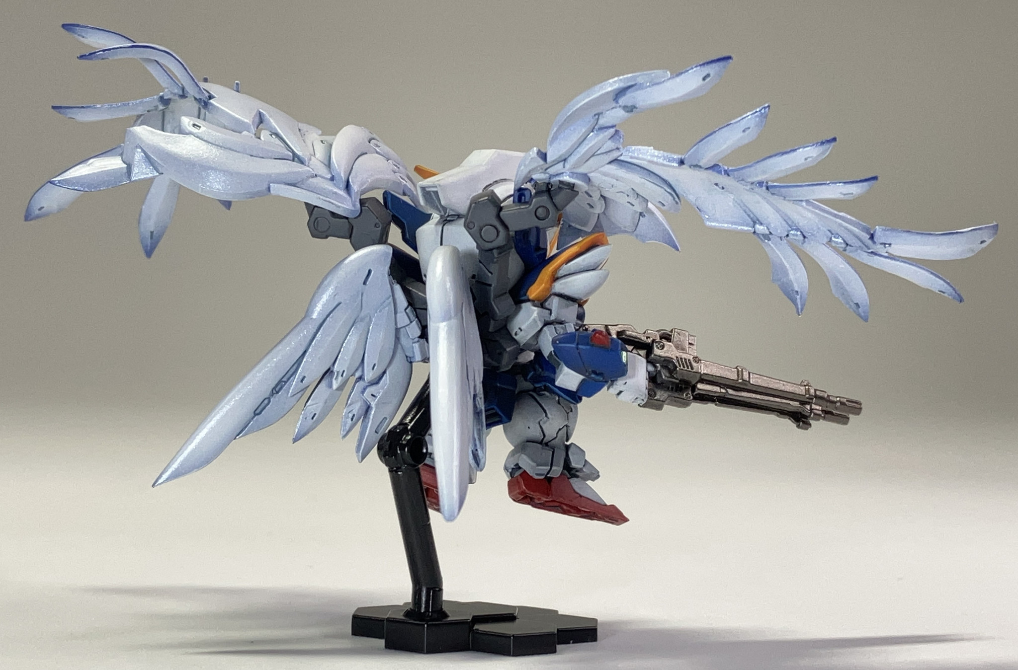 羽は本体の白部分とは違う青系の下地にしてみました。
