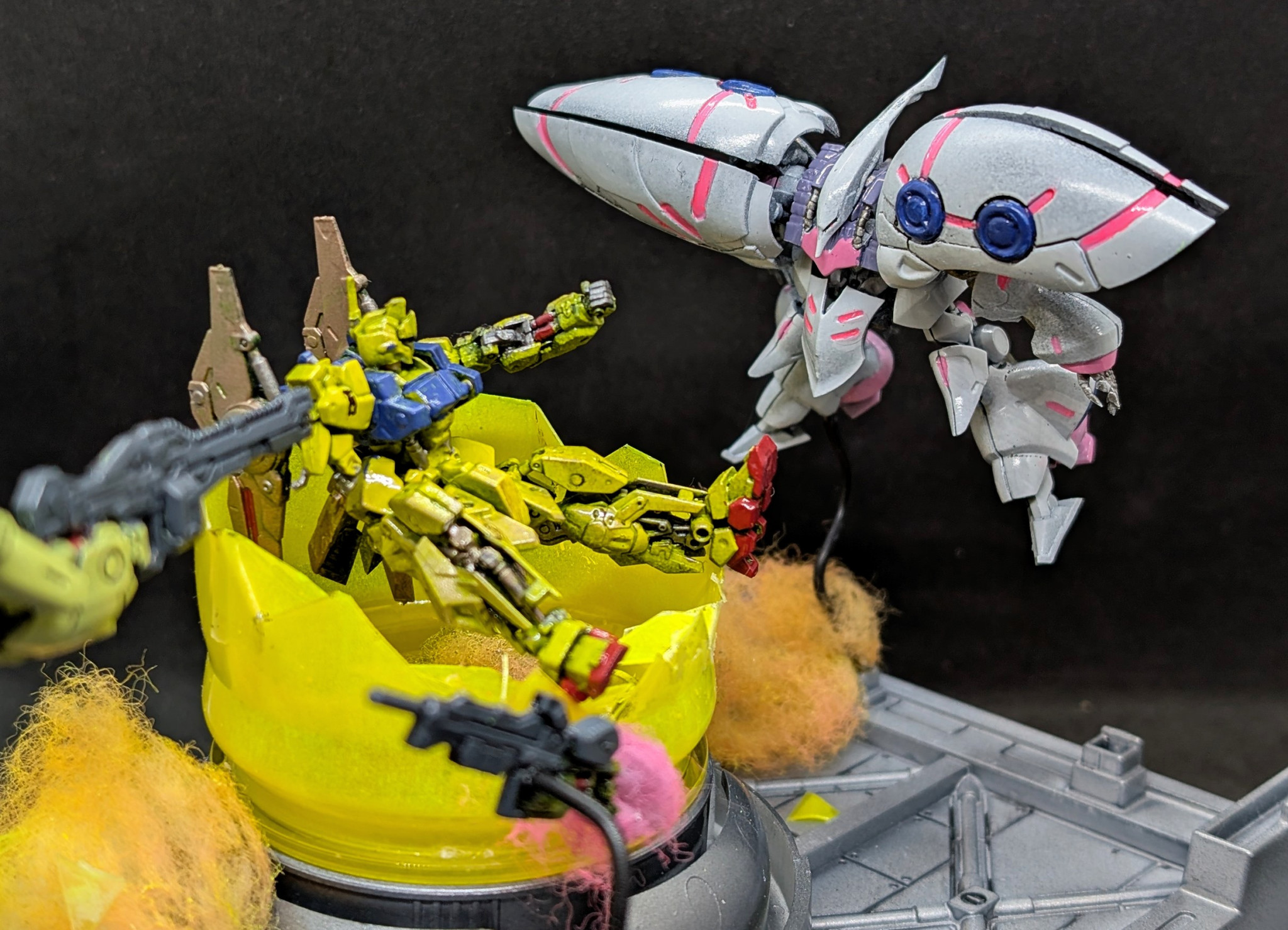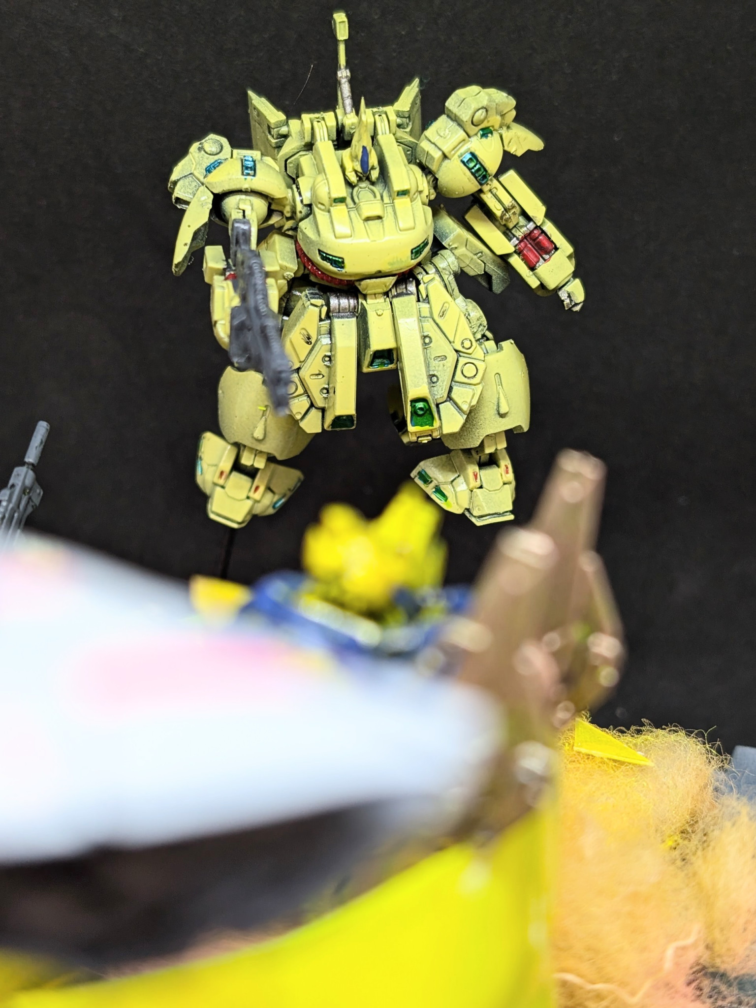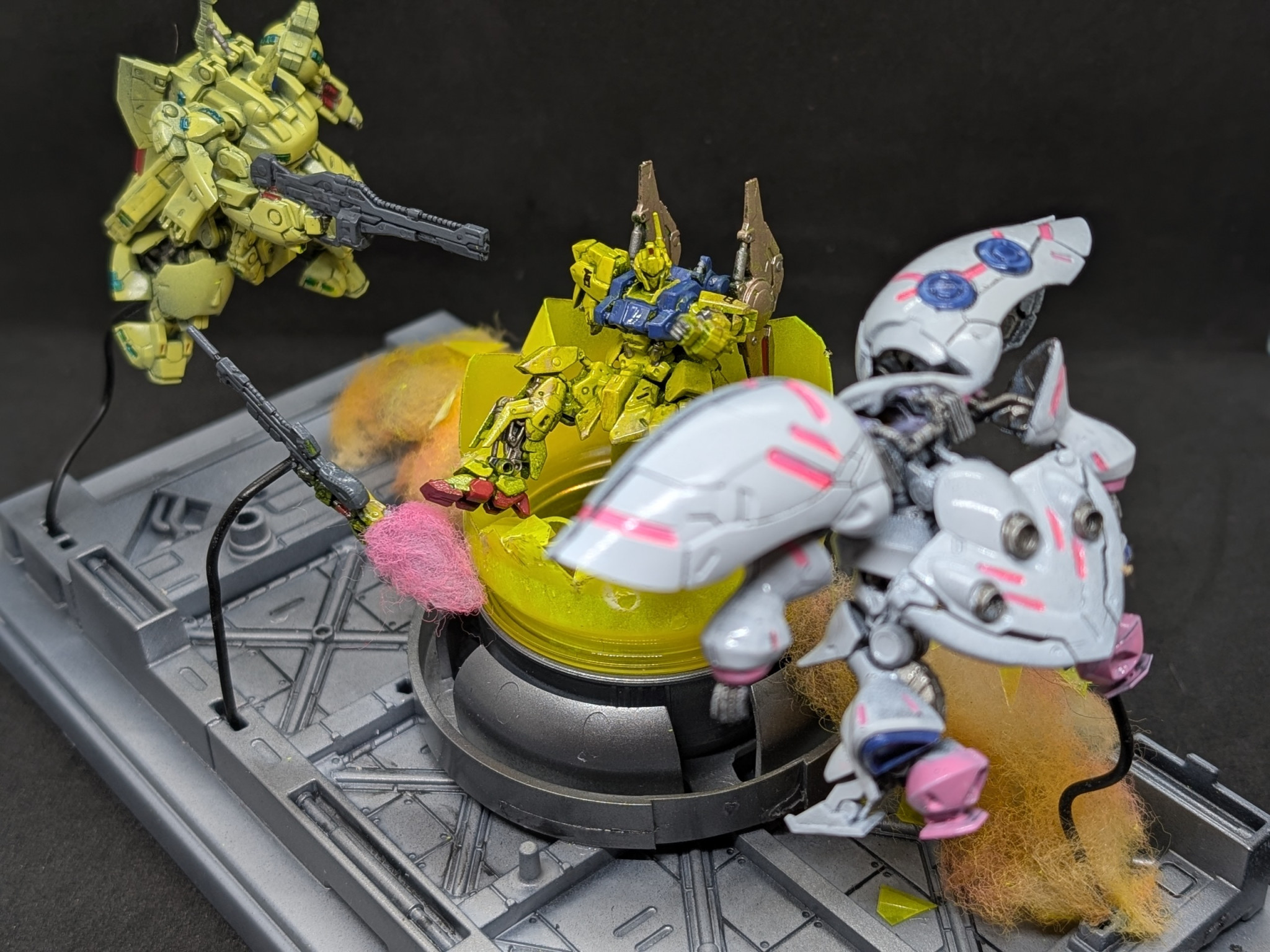 百式は金色にするとアニメっぽくないので強い黄色にしました。キュベレイは組み立てて色を塗っただけですね