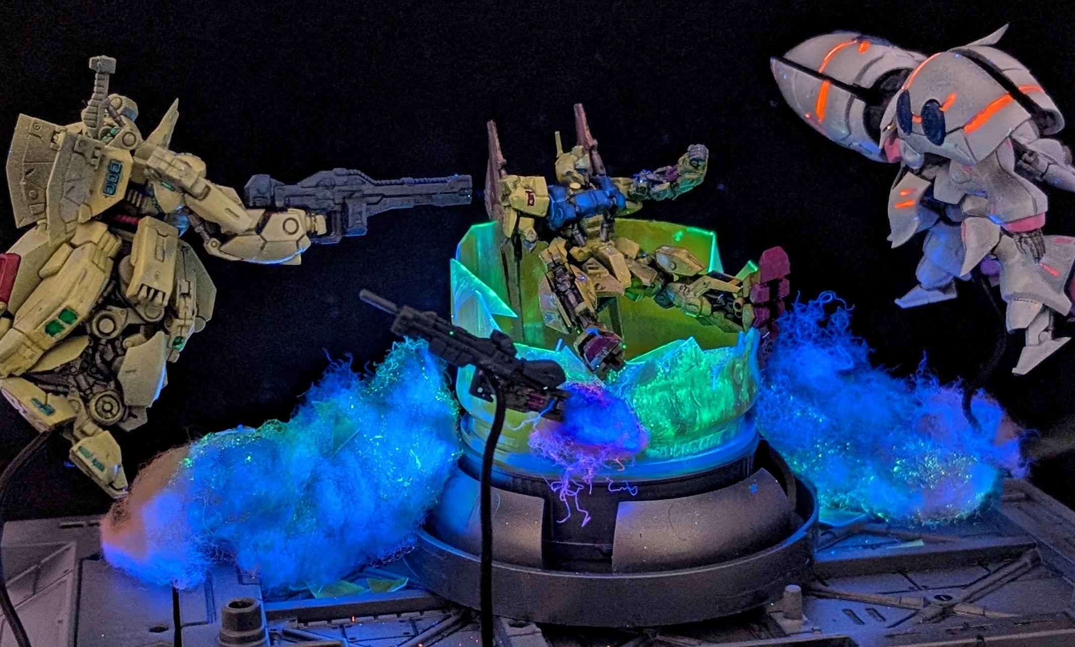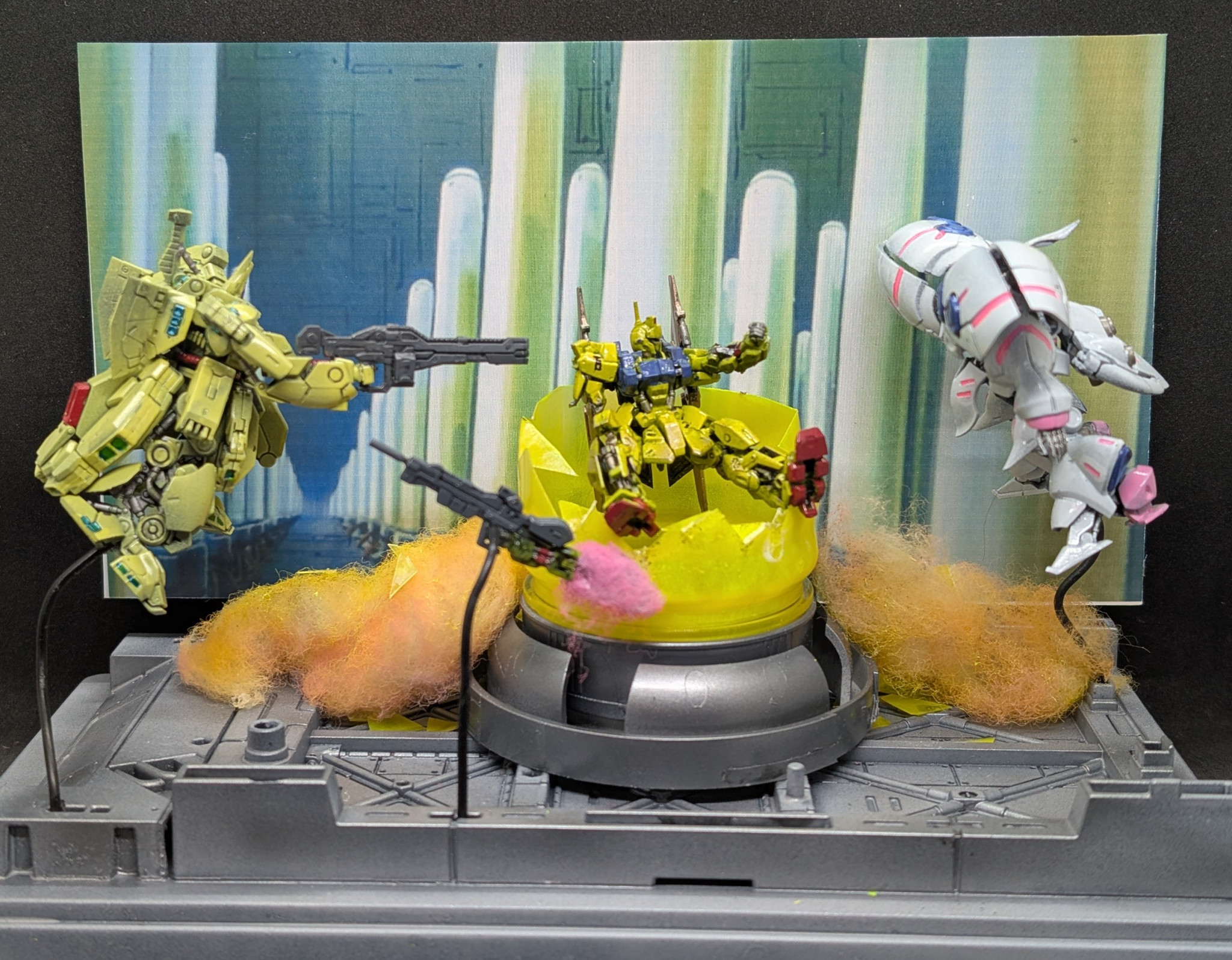 Zガンダムで一番カッコいいシーン。百式、キュベレイ、ジ・Oの三つ巴の戦いをジオラマにしました。