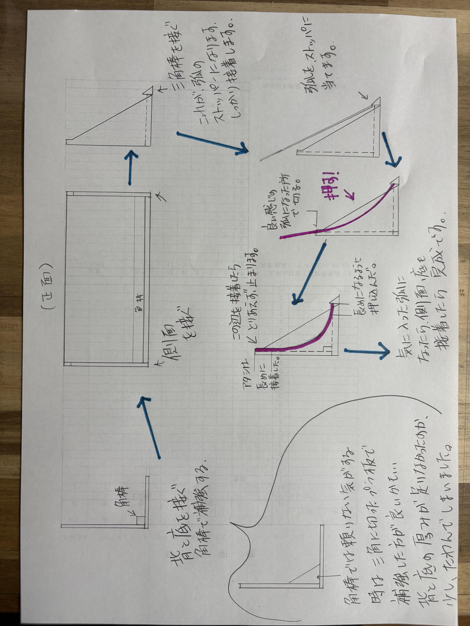 ストッパーは、たまたま三角棒が有ったので使いましたが、弧の板を止めれたら、何でも良いと思います。