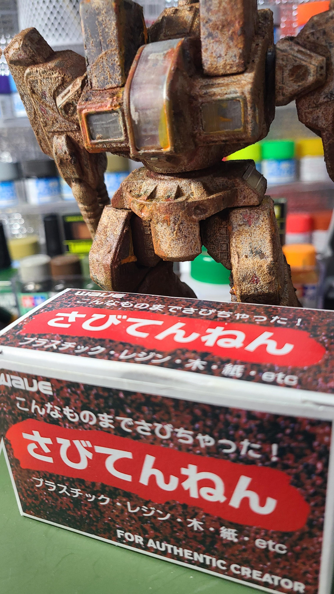 ![前回の展示会で沢山の方とお話をさせて頂き、案外これを知らない方がいらっしゃったので、ここの方は知ってる方が大半でしょうが紹介させて頂きます。こちらはWAVEさんから発売されている[さびてんねん]という商品なのですが二液混合する事で本物の錆を作り出すヤベェやつです!使用方法が簡単すぎてまず1液をサビさせたい場所に塗布し、乾いたら2液を塗布するだけでアラフシギ!どんなものでもサビサビです!嫌いな上司の車とかに是非(*^^*)](https://gumpla.jp/wp-content/uploads/2025/11/176239006598781083773908172122-576x1024.jpg)