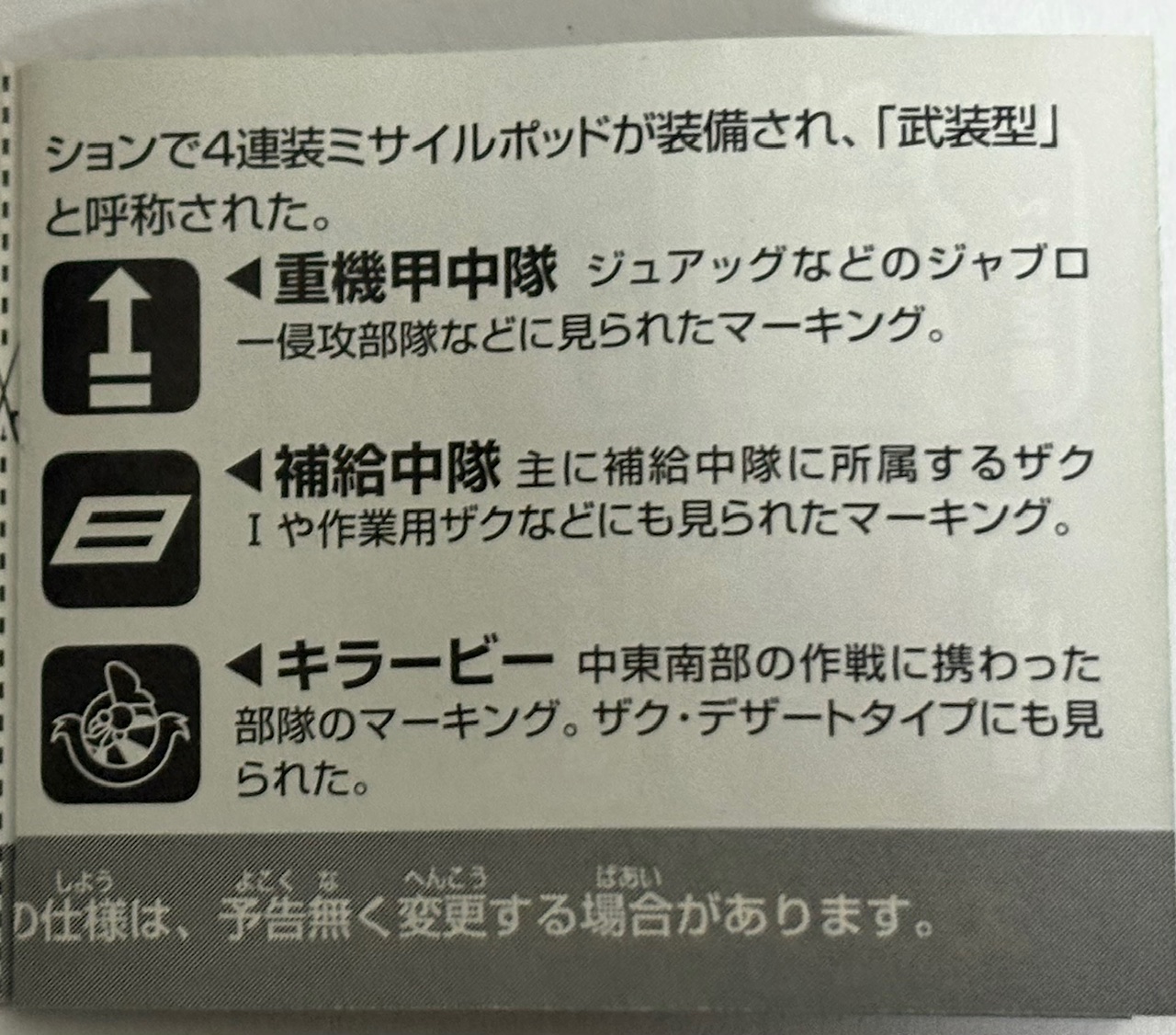 機体についていたマークは「補給中隊」のマークらしく、他にもマーキング違いのバリエーションもあるらしい。