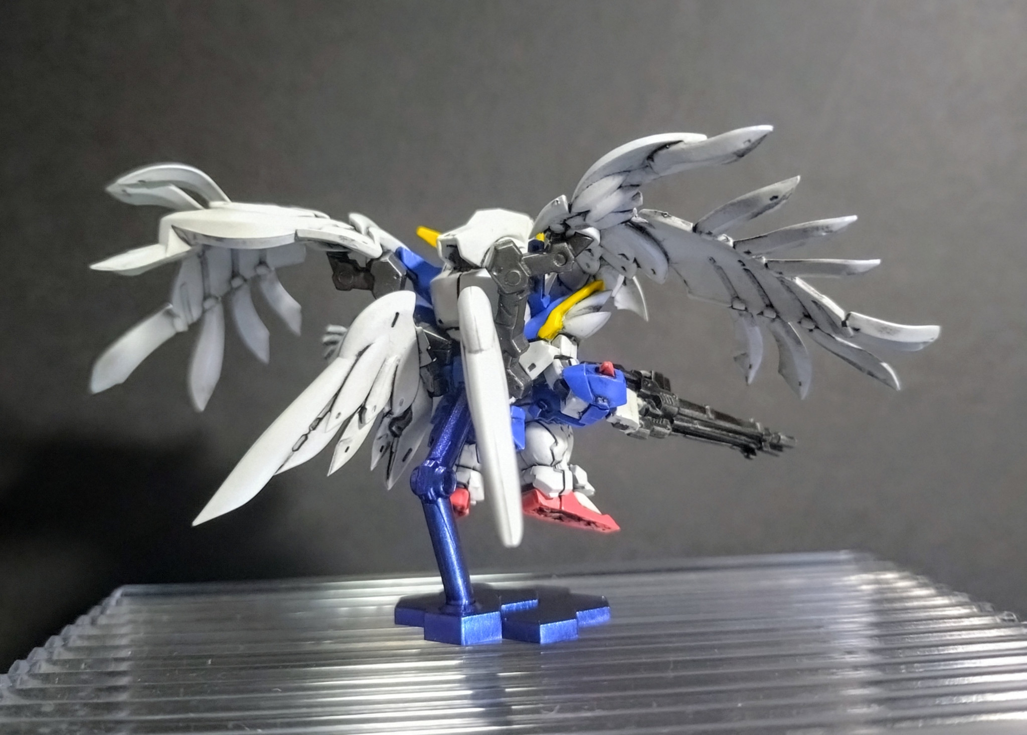 ・塗装はメカサフライト→スチールホワイト→サファイアブルーと吹き、細部は水性マーカーにて塗装し最後はスミイレし半光沢クリアで仕上げてあります。