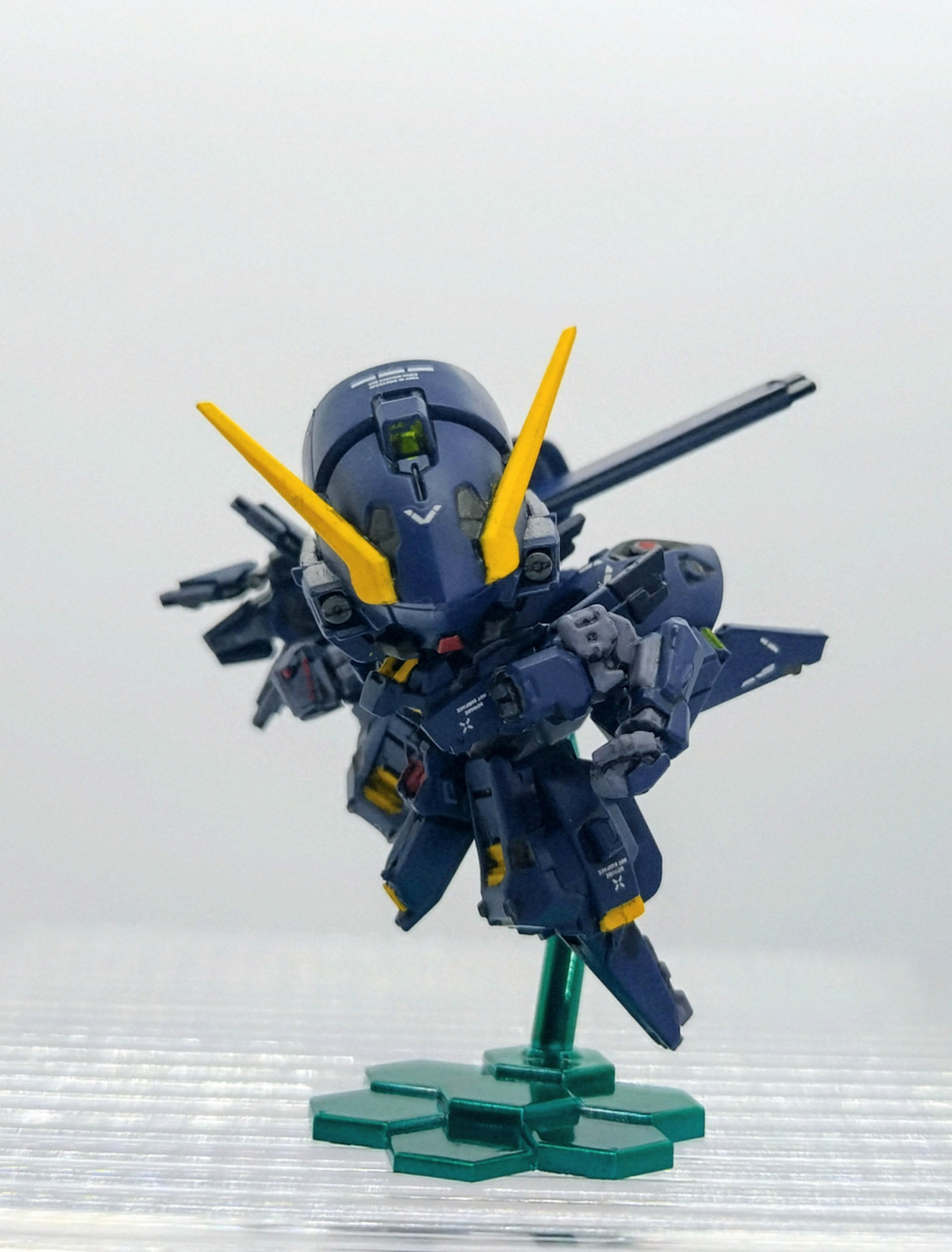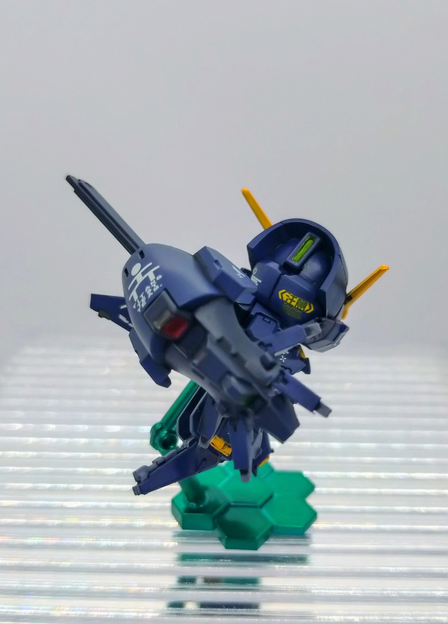 塗装はメカサフライト→ティターンズブルー2と吹き、細部は水性マーカーと筆塗り、最後はスミイレ後にデカール→ツヤ消しクリアで仕上げました。