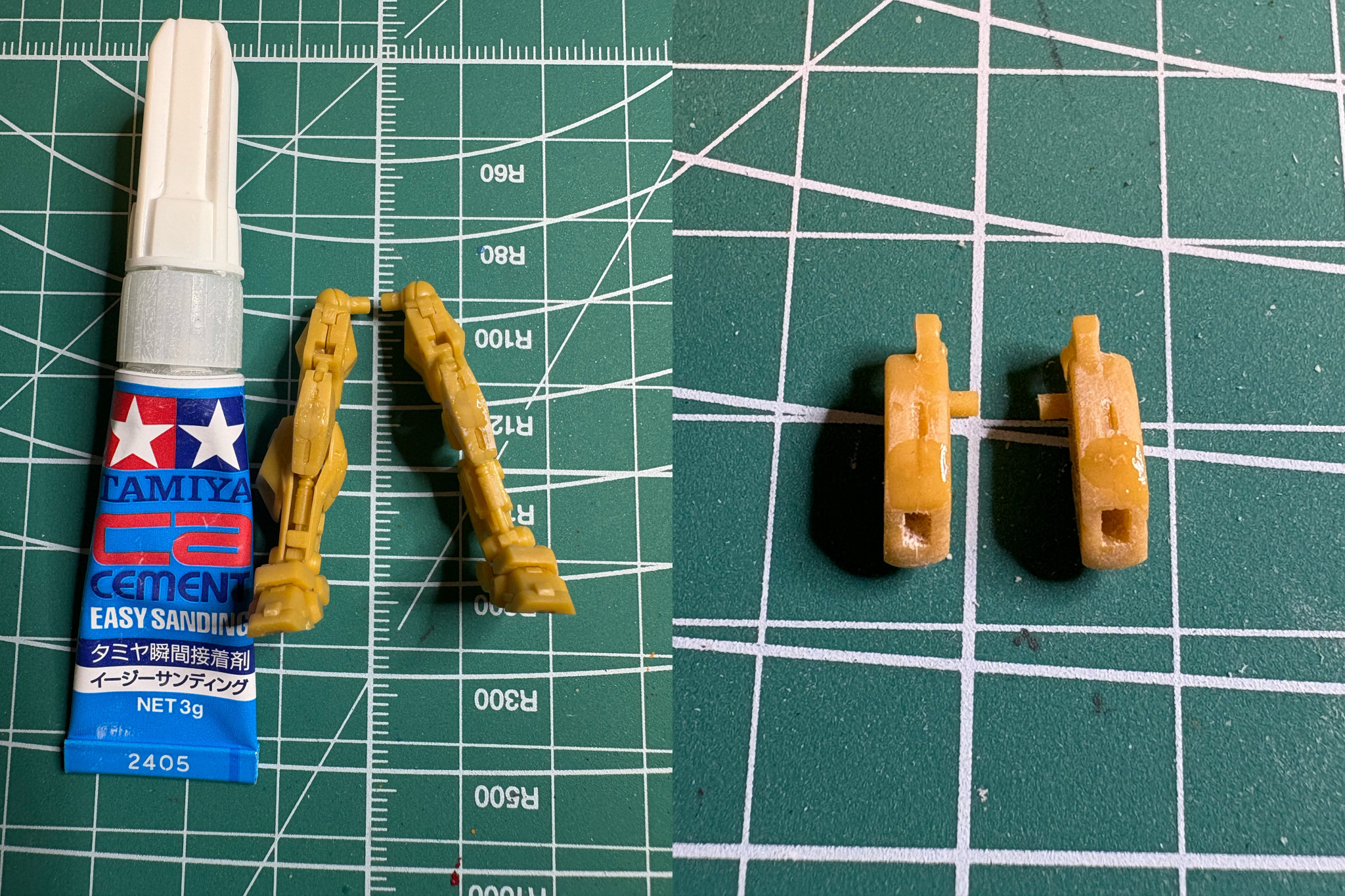 パーツ切り出し後、イージーサンディングで脛部分とバッパクの合わせ目消し。