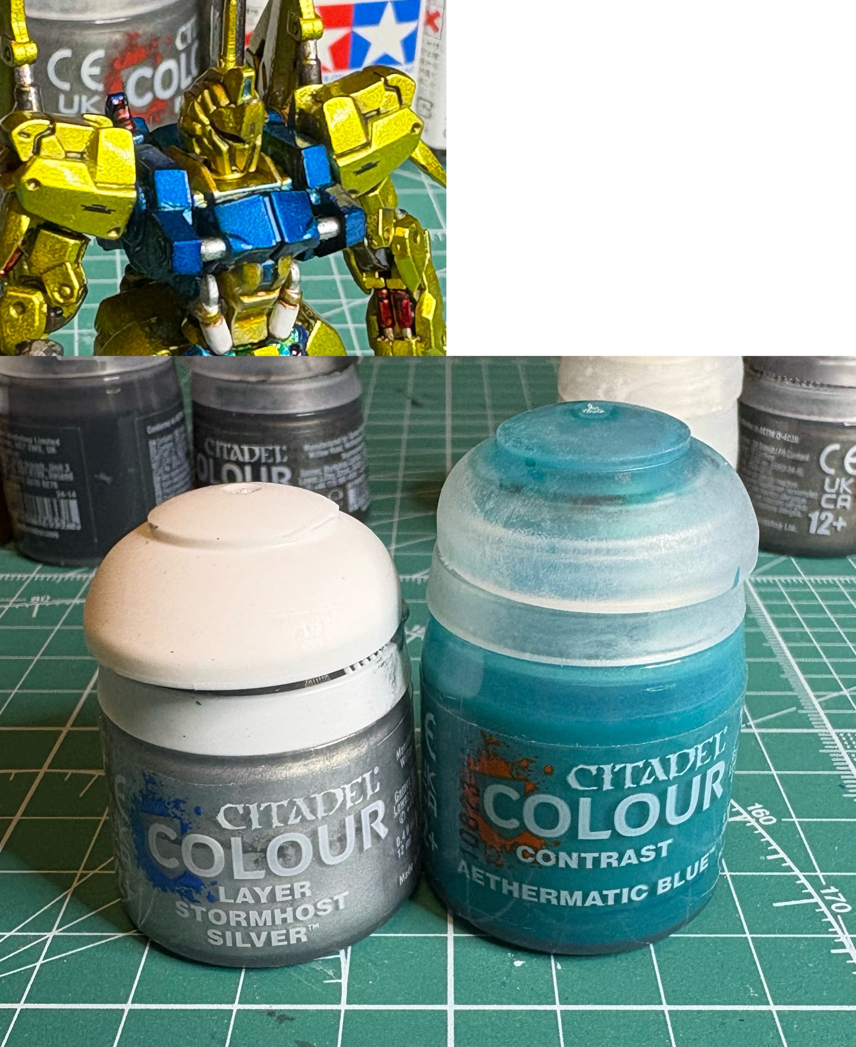 頭部センサーはシタデルカラーのSTORMHST SILVERの下地にAETHERMATVH BLUEで筆塗り