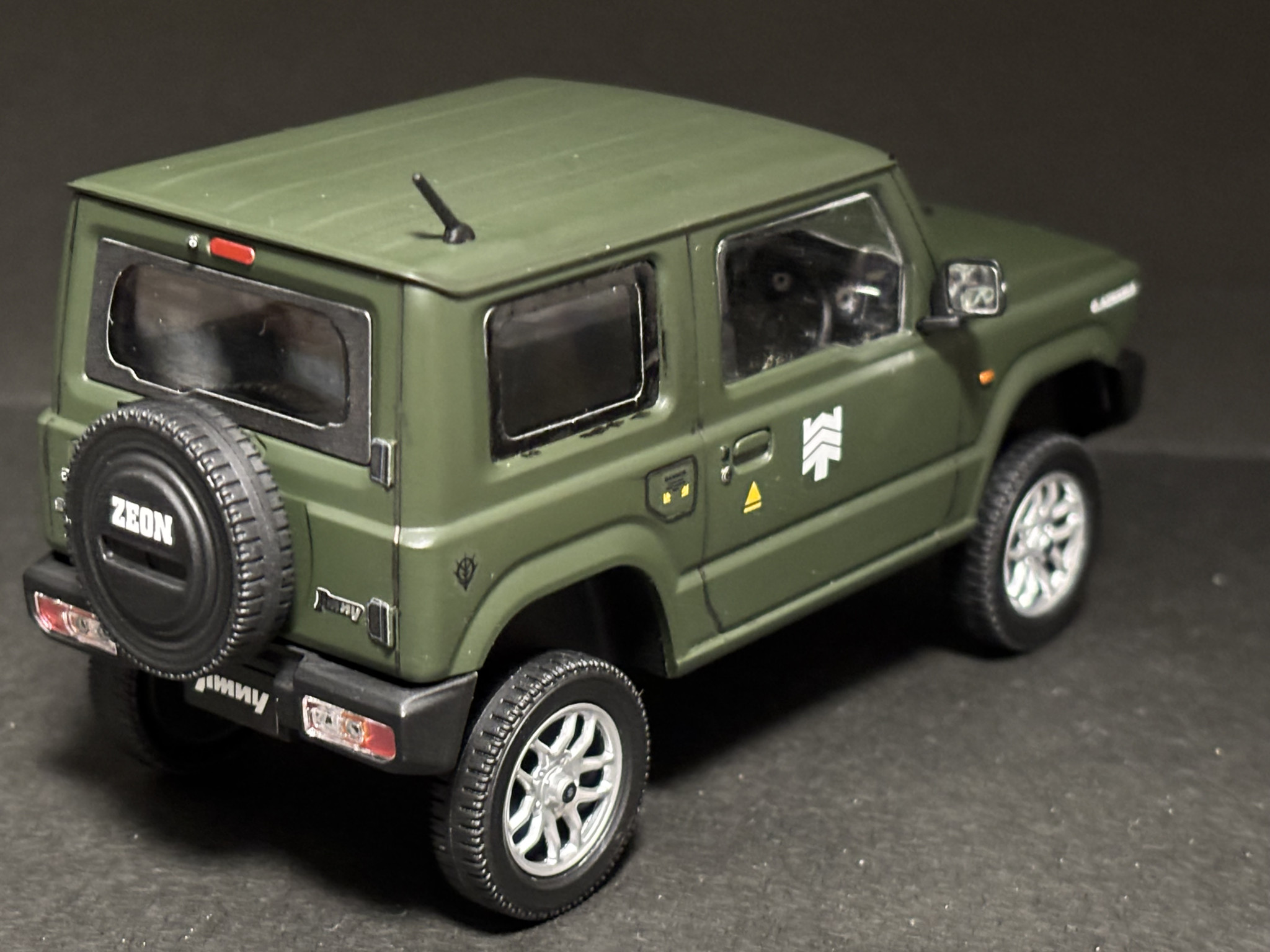 今回は楽プラという車のキットを触る機会があったので、3時間くらいのスピード施工ですがジムニーをシャアの部隊用という設定で作ってみました。