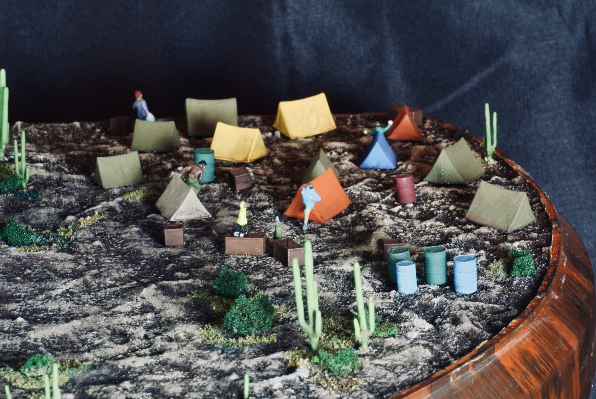 スケール感を出すためアプサラスの登場に慌てふためく難民キャンプも作成しました。