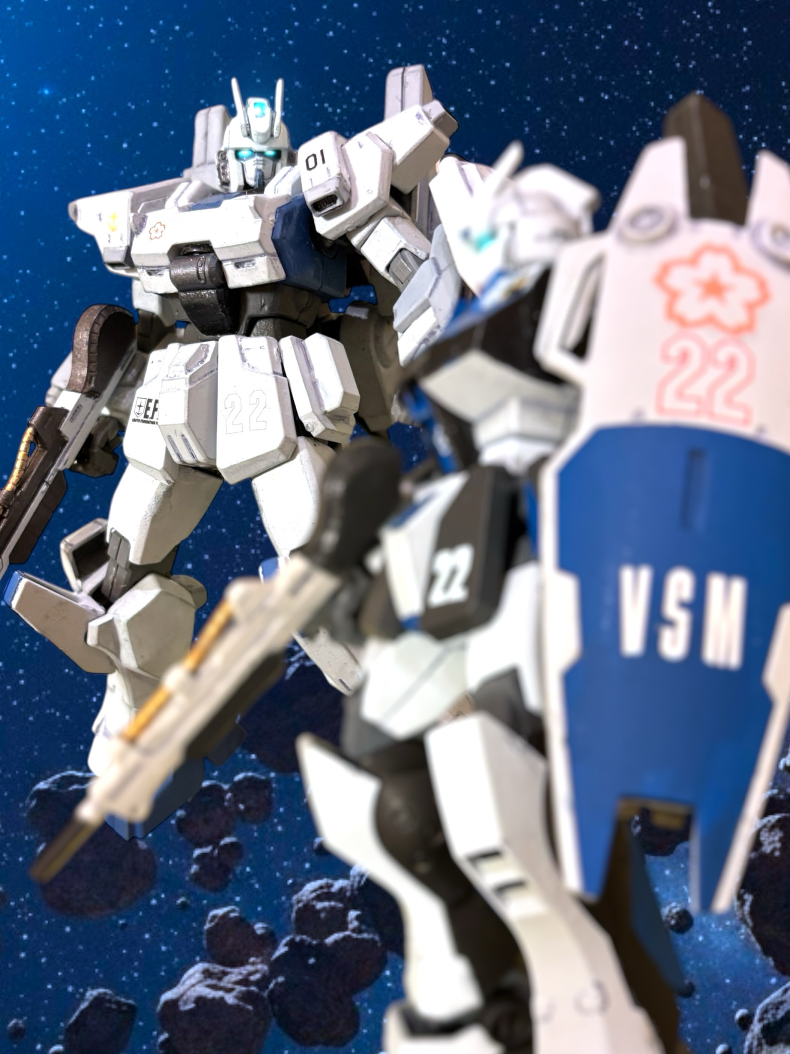 地球連邦軍が密かに管理している、小惑星型基地の付近を、デュアル・アイの白い機体が飛ぶ。その隣には、青い機体が、寄り添うように追随している。新型機のテスト飛行だ。