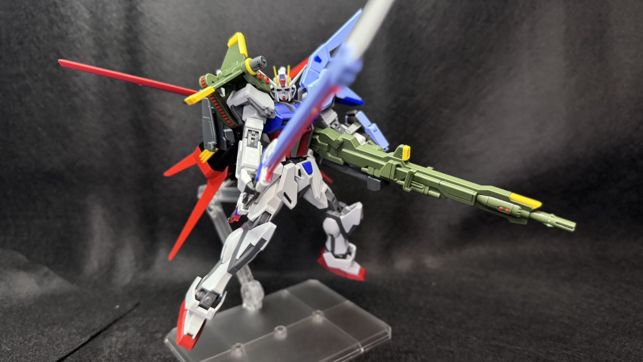 ならばということで積みプラにしておいたオプションパーツセットを引っ張り出し、軸接続などを改造して取り付けれるようにしてパーフェクトストライクに換装できるようにしました!