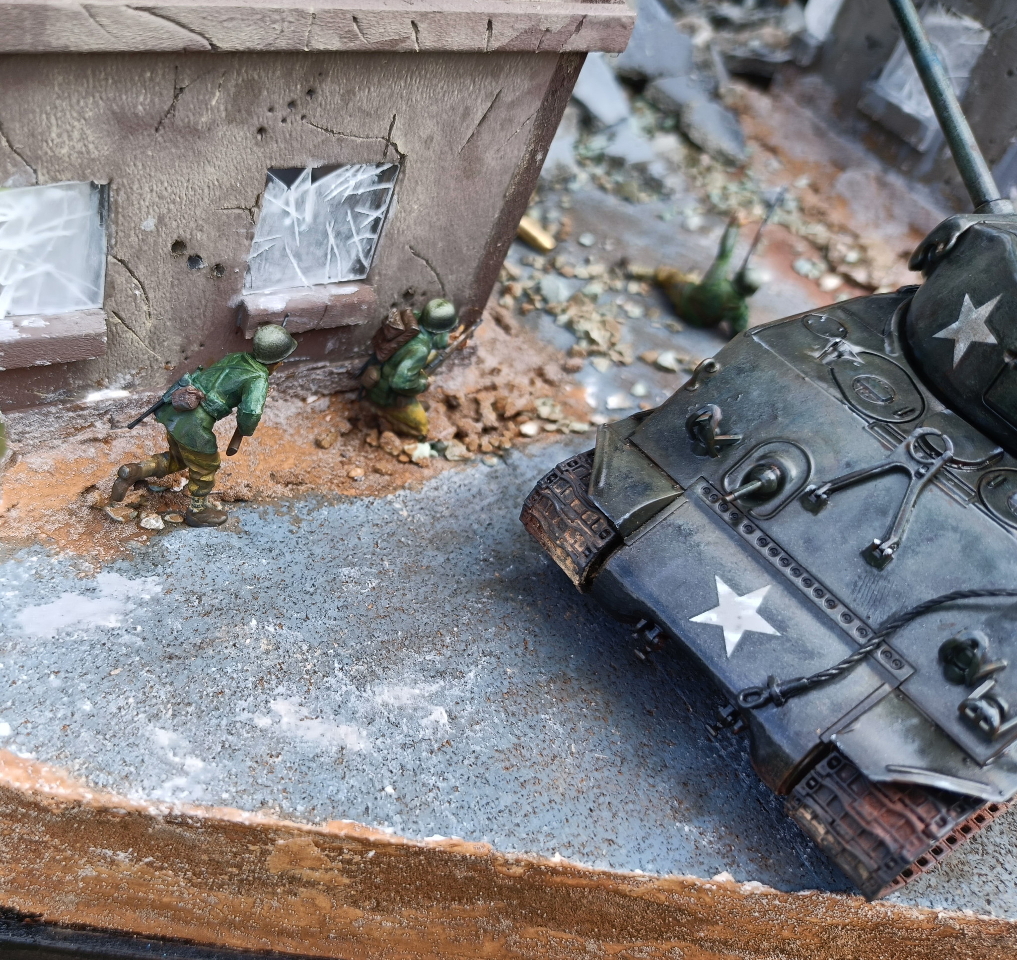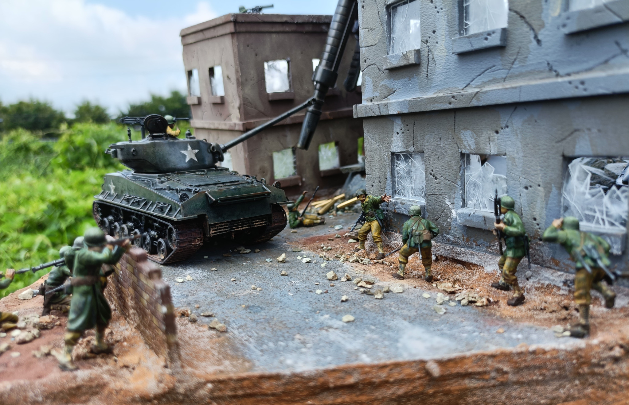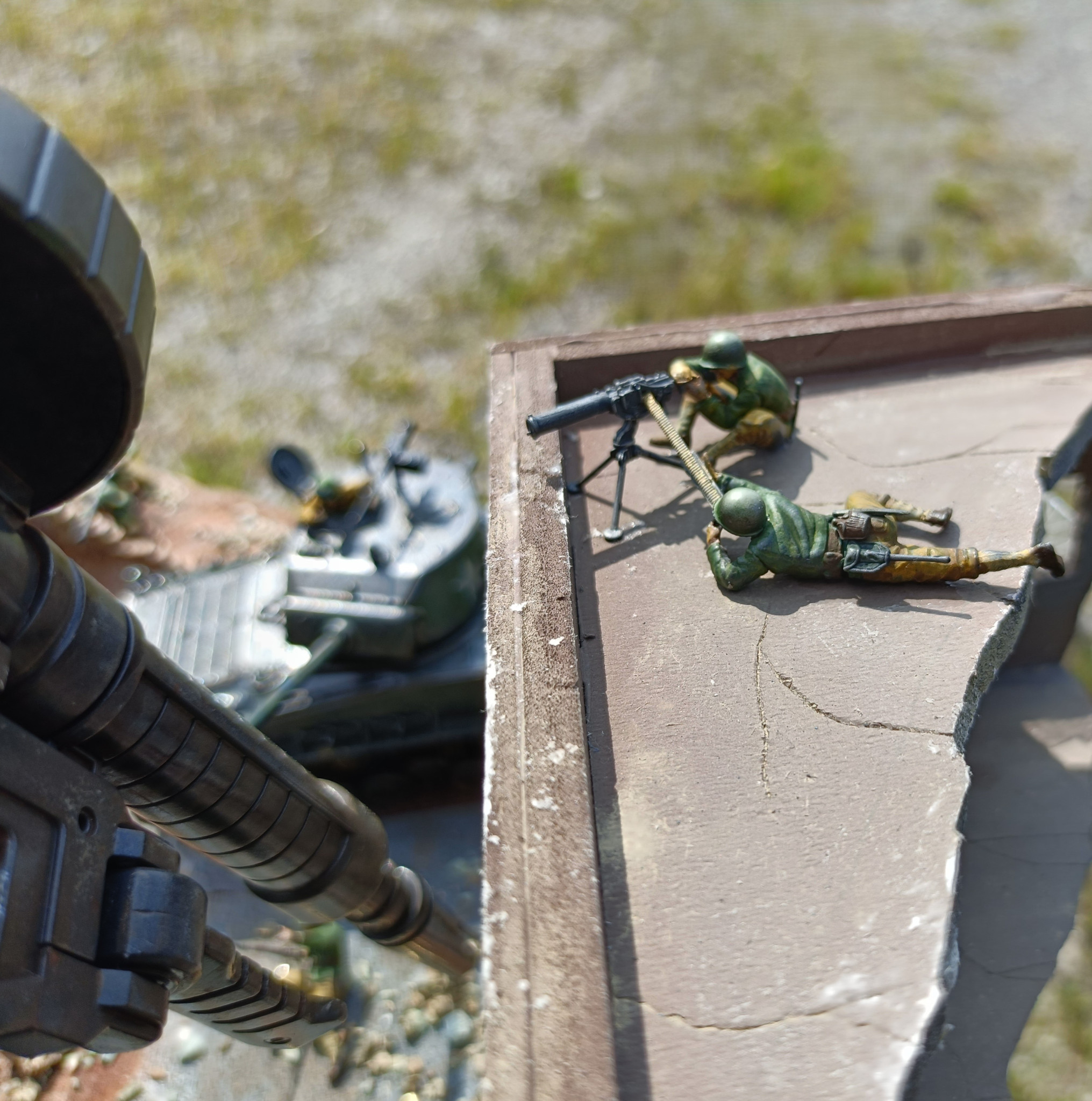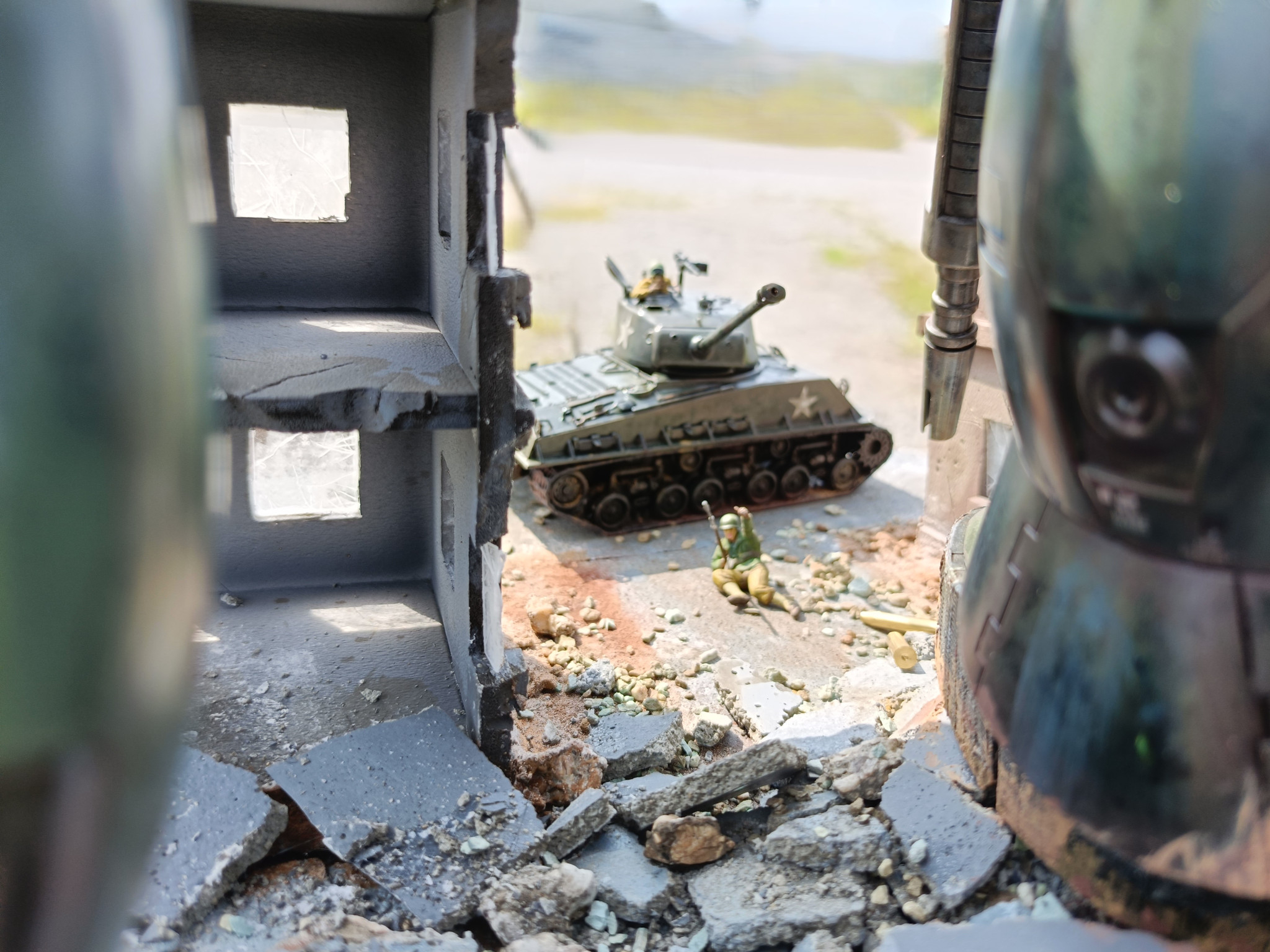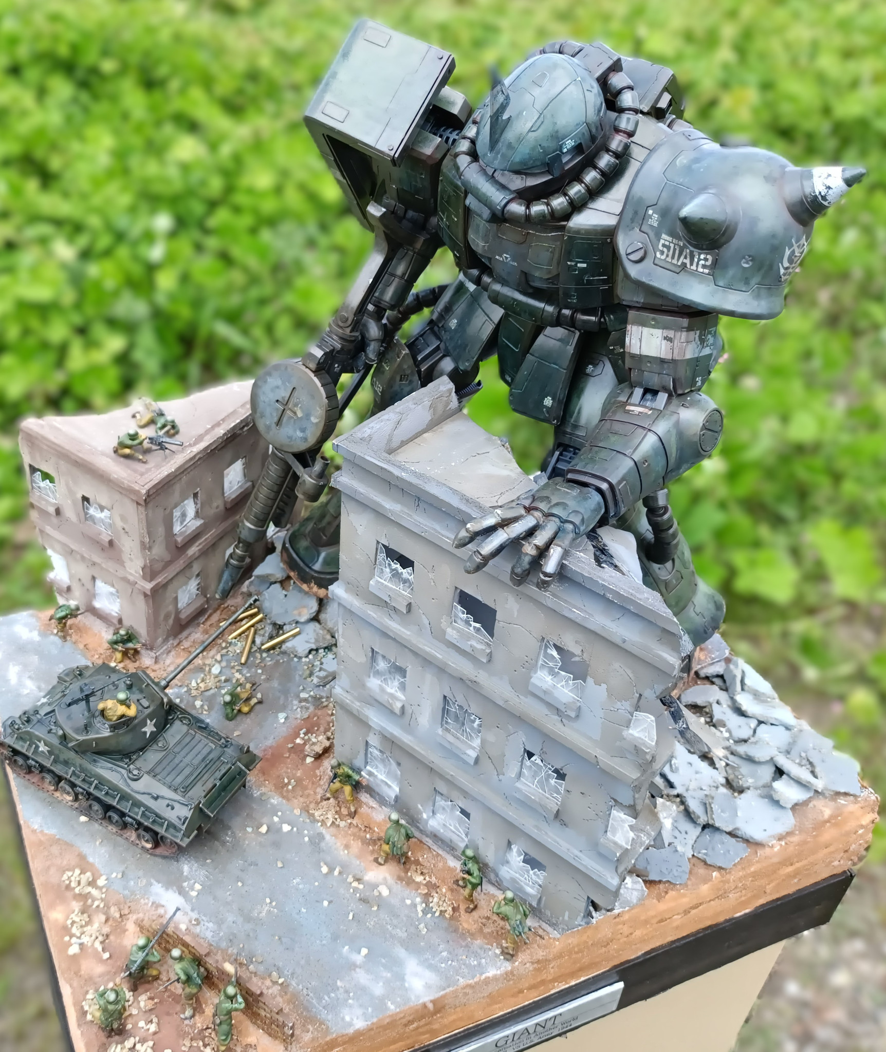 設定は、ザクが第2次世界大戦ヨーロッパ戦線にタイムスリップしたら?というような内容です。フィギュア・シャーマン戦車は同スケールのタミヤ1/48スケールです。