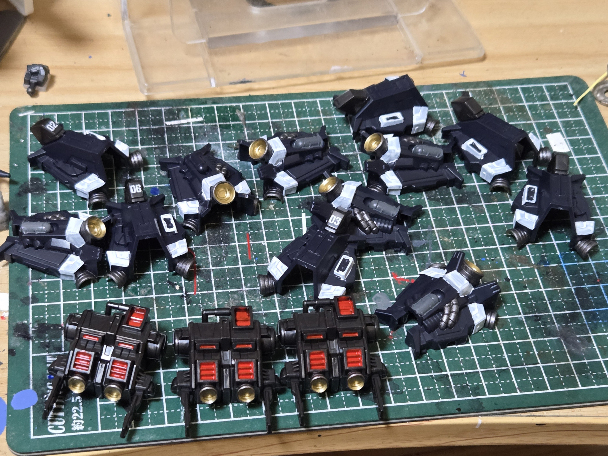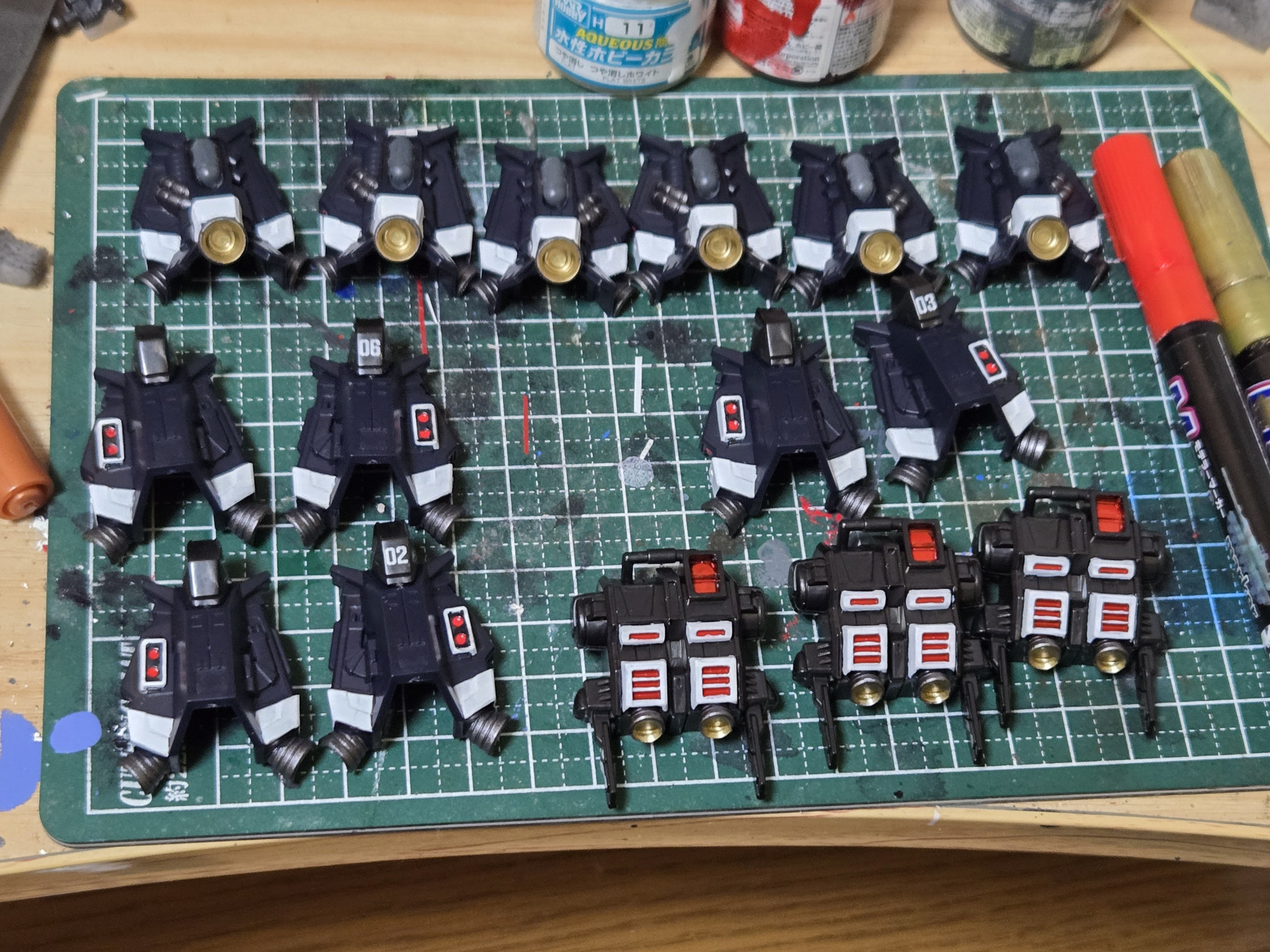 この後細かい修正やらデカール貼り、モノアイも百均シールに変えてみたりしていく予定です(((^_^;)