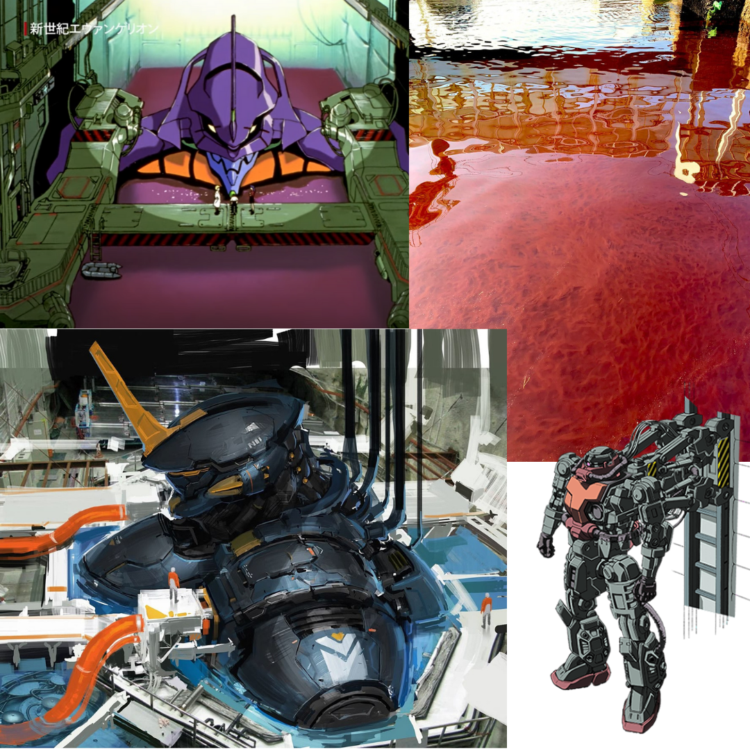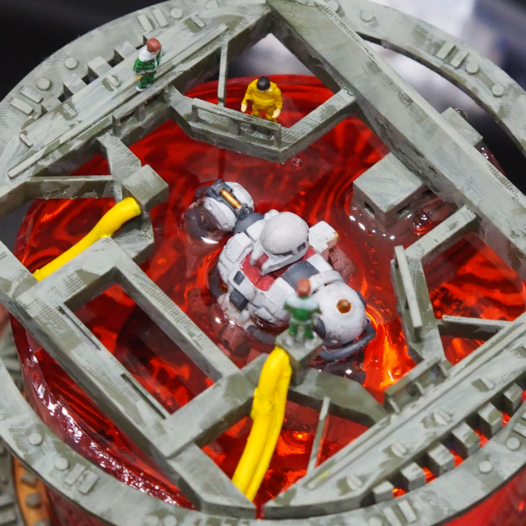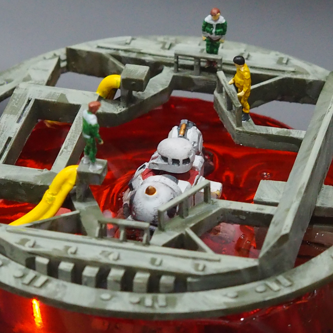 上からザクが赤い液体に沈んでいる様子。