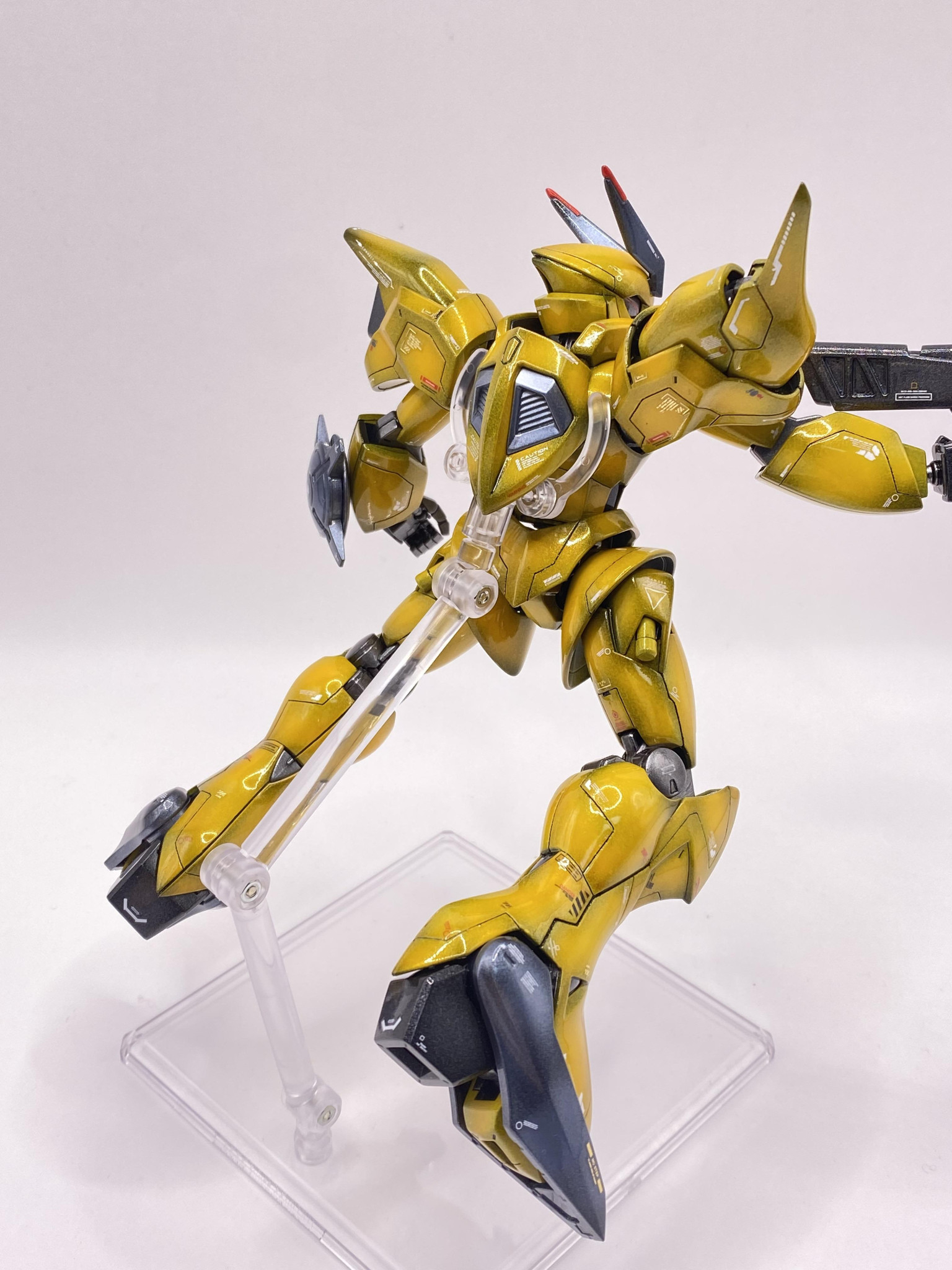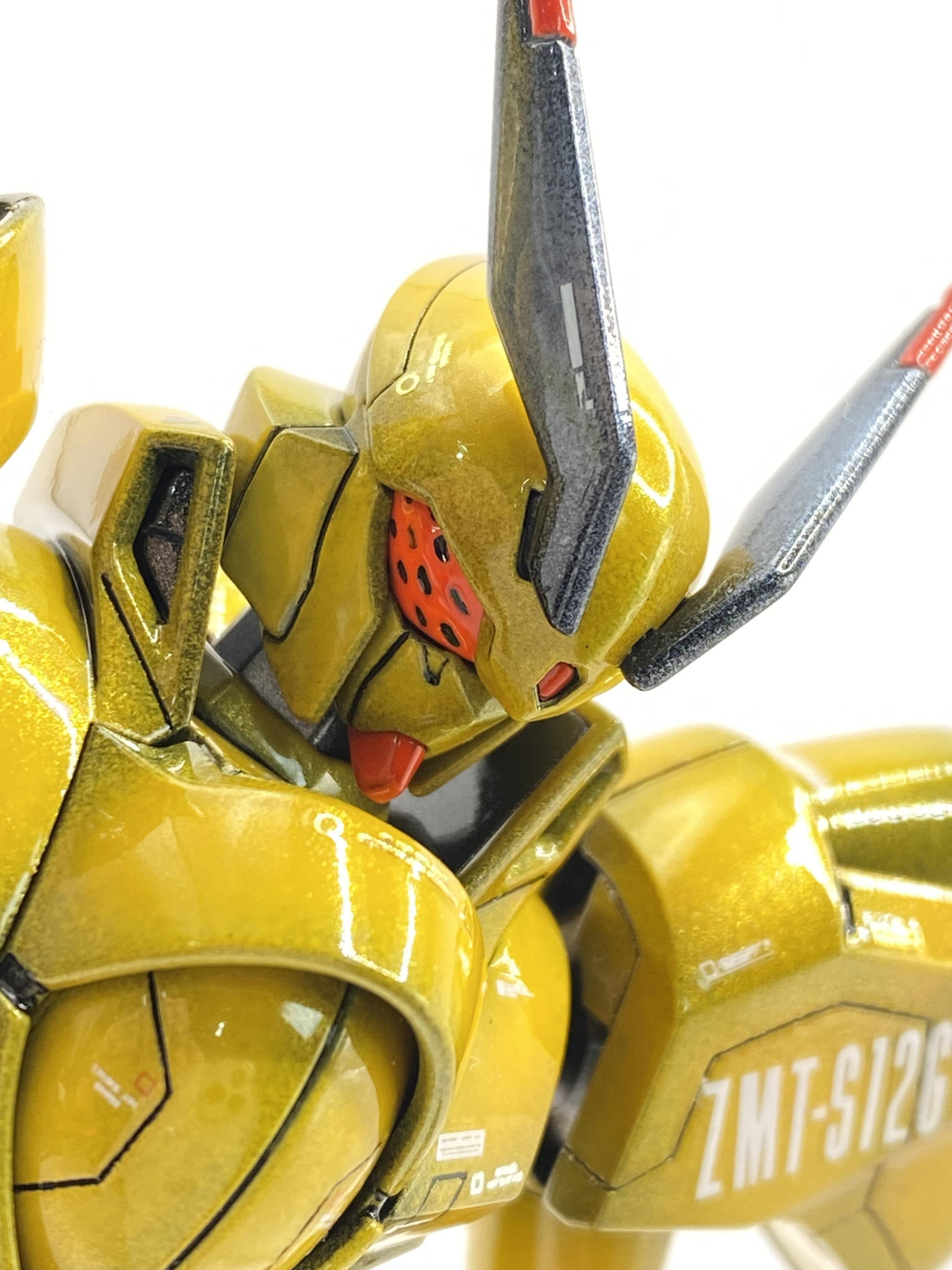 今回はメインの黄色は黒サフ下地~ホワイトのグラデーション~調色したクリアーイエローを重ね~クリスタルカラーのトパーズゴールドをサッと吹き~墨入れ~クリア~デカール~GGXクリアトップ