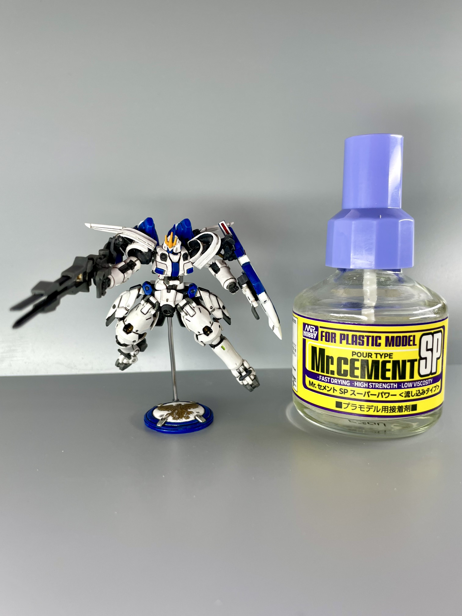 始めアクリジョンの瓶と並べて撮ったのですがいまいち小さい感が出なかったので、少し大きいMr.セメントの瓶と撮ることで小さいアピールをかさ増ししています。遠近感も使用するか悩んだのですが流石にセコいのでやめました。