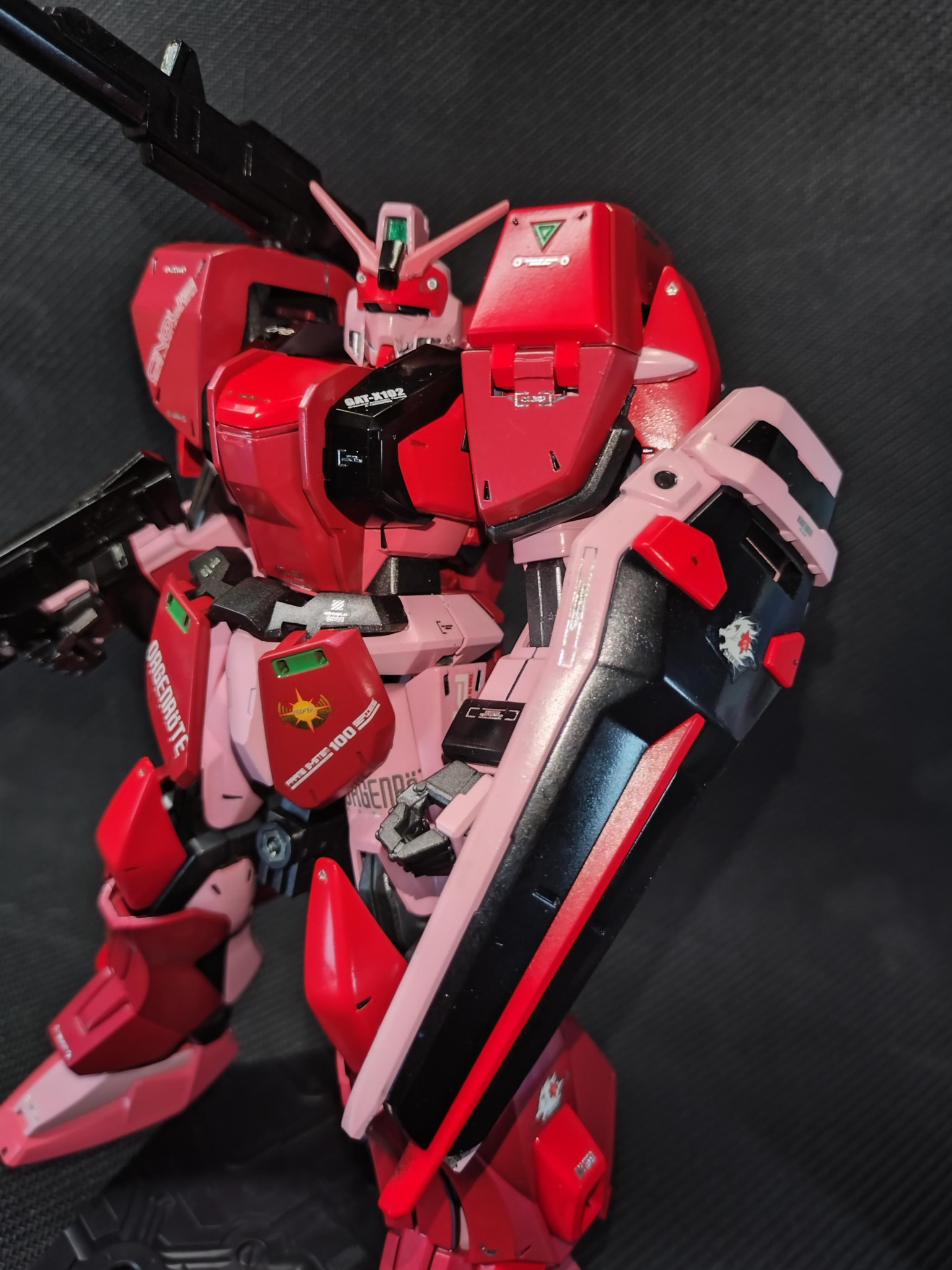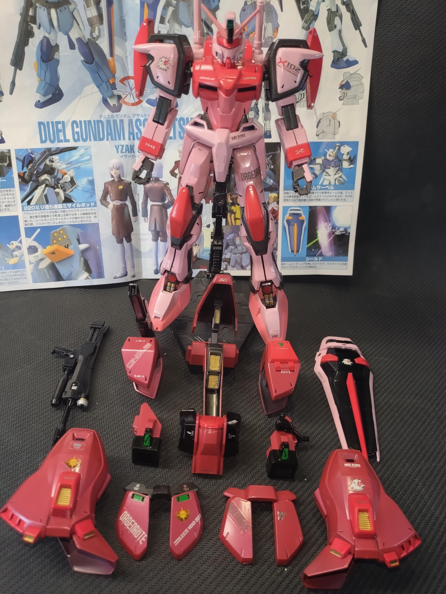 初期GATシリーズのデュエルガンダムを、ルージュ風に塗装しました。もしもキラがストライクじゃなく、デュエルに乗っていたら、ORBの姫様は、こんな感じのデュエルを使うのかな〜?みたいな感じで制作しました。