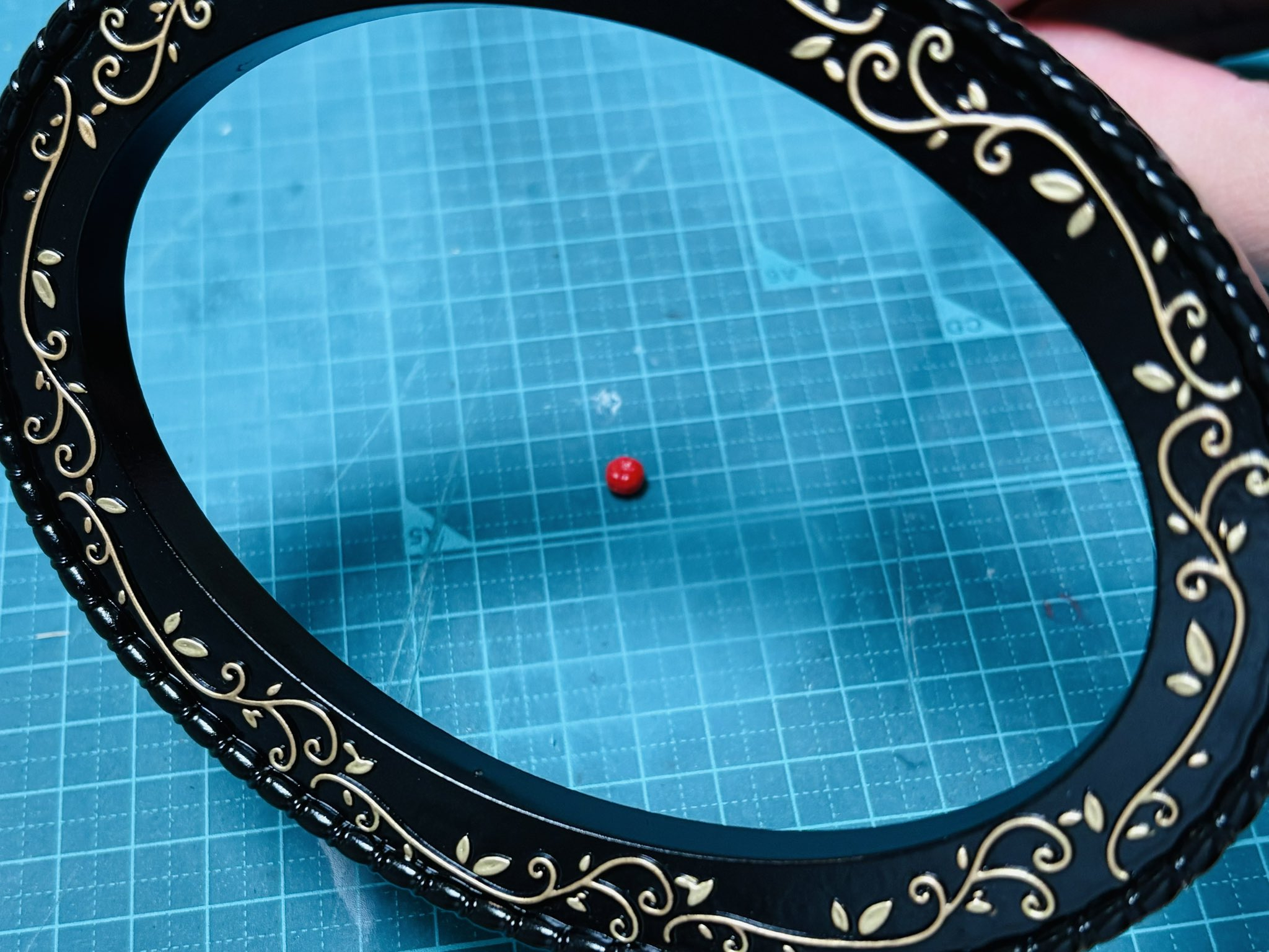 台座塗装後。ゴールドはラッカー、黒は水性塗料で塗装しています。模様の部分のみマジックリンで拭き取ってます!