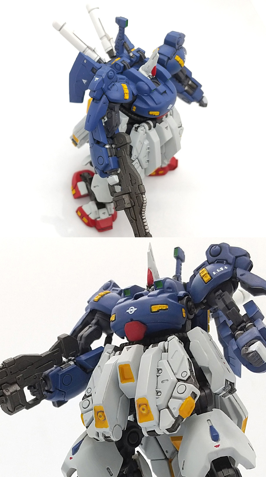 股関節にハの字加工を施し足を延長、またプロペラントタンクを装備した姿はよりヒロイックな印象です。