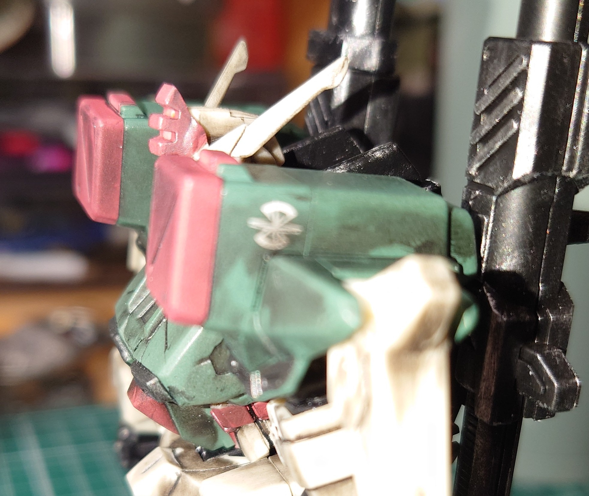 肩のミサイルランチャーの弾頭も赤く塗ってますよ!