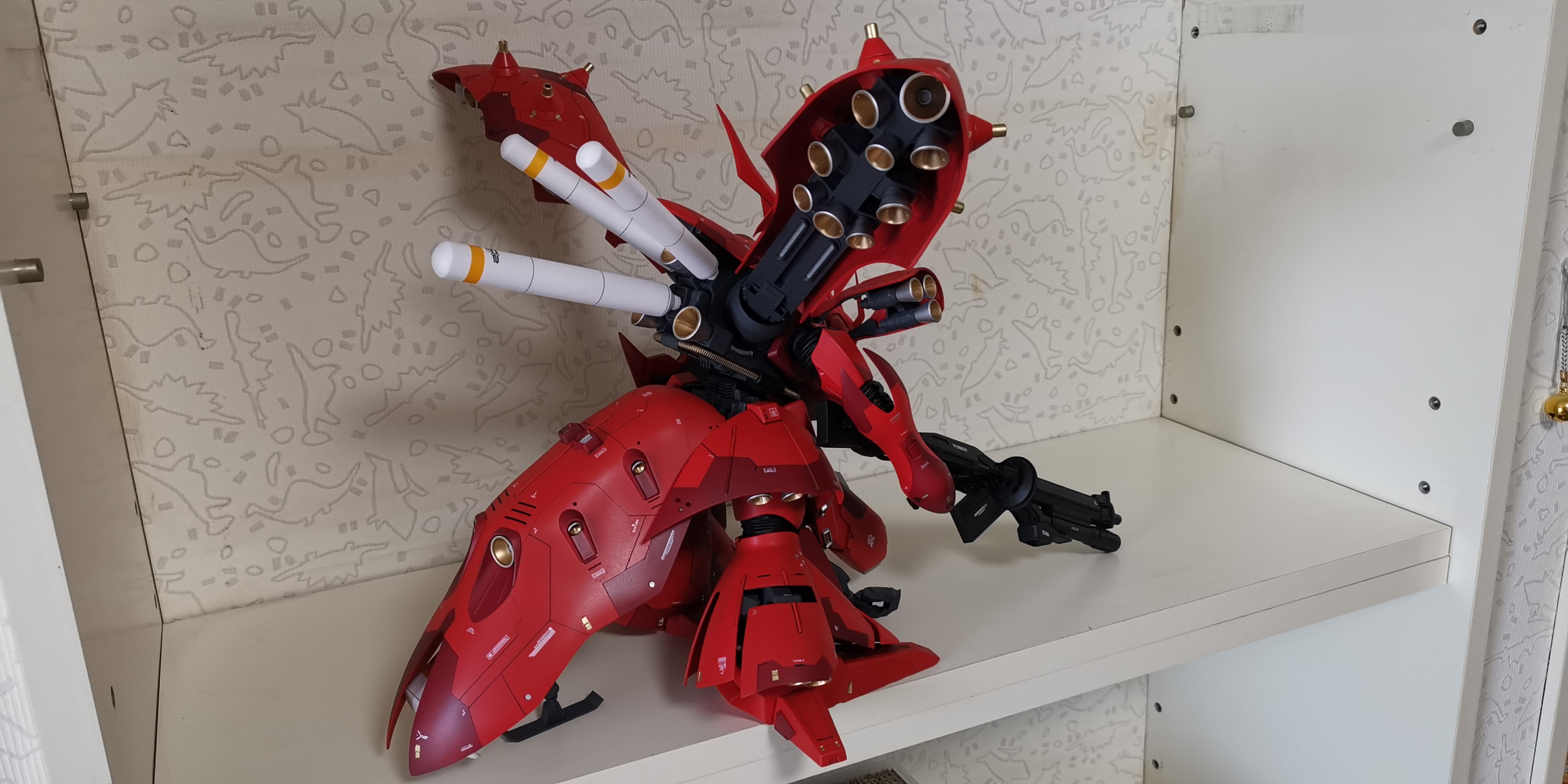 上半身は大きく前傾させ、脚部は短足化し、ファンネルコンテナの取付角度も大きく変更しました。