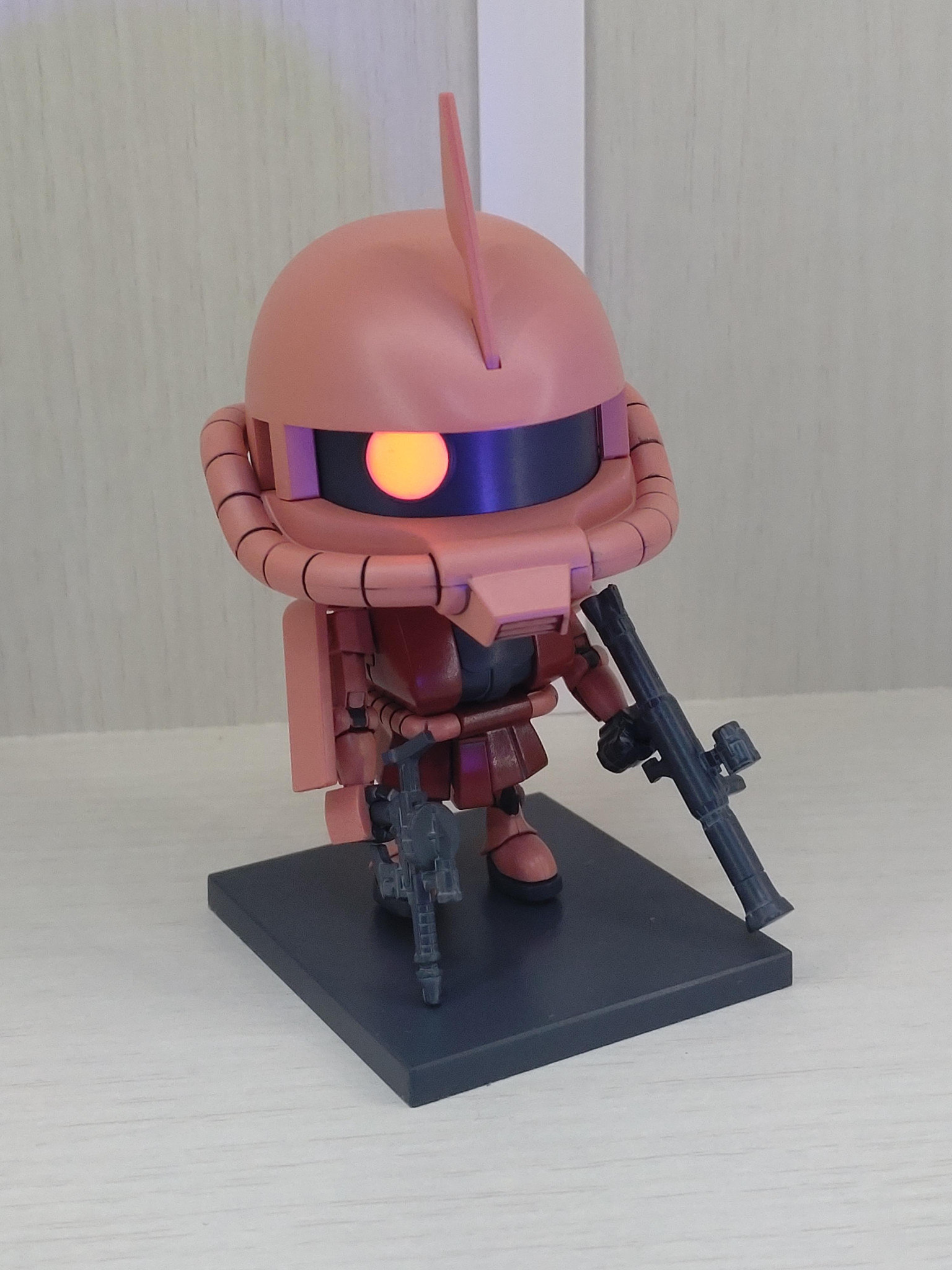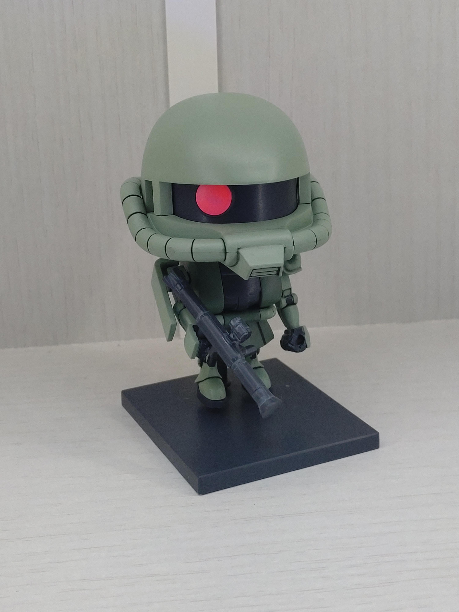 ガンプラくんシャアザクくんザクくんロールアウトしました。ガンプラくんのシリーズ3種セットをまとめて作ってみました。新素材らしいのですがコレが白化しやすいのなんのって…ガンプラくんのシールドはランナーに付いてる時点で既に白化済み!?って事で仕方なくスプレーとスプレー処理しにくい所は筆塗りで全塗装してみました。