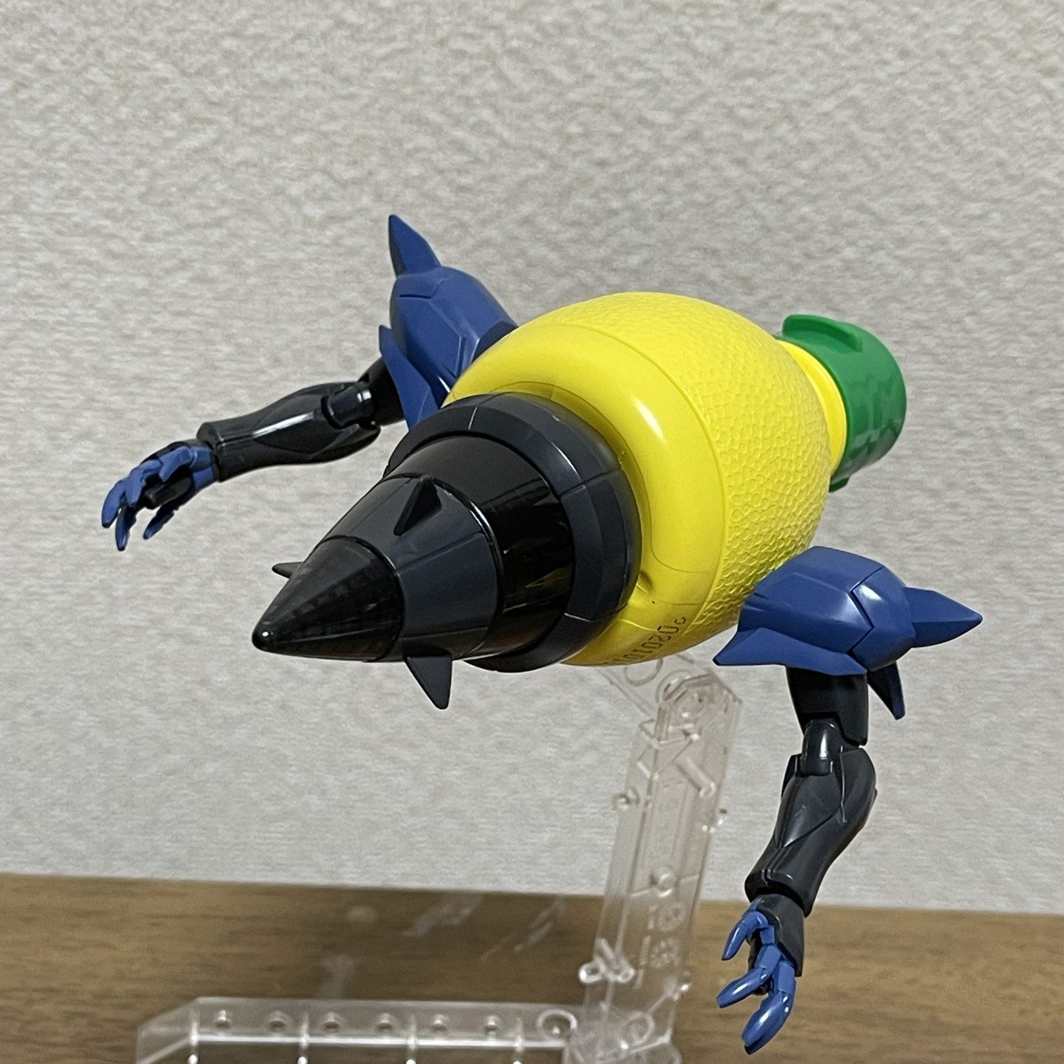 今回のミキシングはポッカレモンのケースに穴開けてHGガフランの腕とポケモンプラモデルのゼクロムの尻尾をぶっ刺しただけになります。