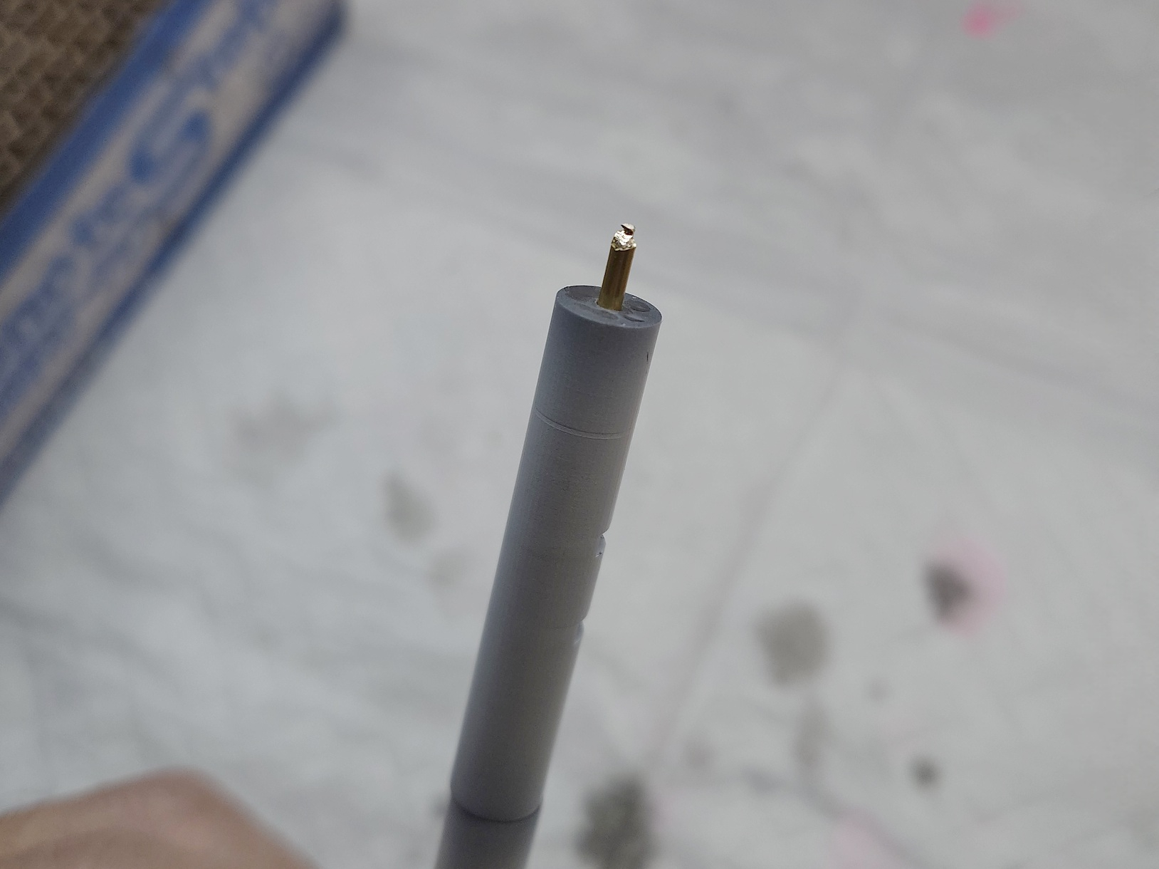 約5cm毎に分割したビームジャベリン本体とビーム部分。中に補強の為の真鍮線を通す穴を開けてます。