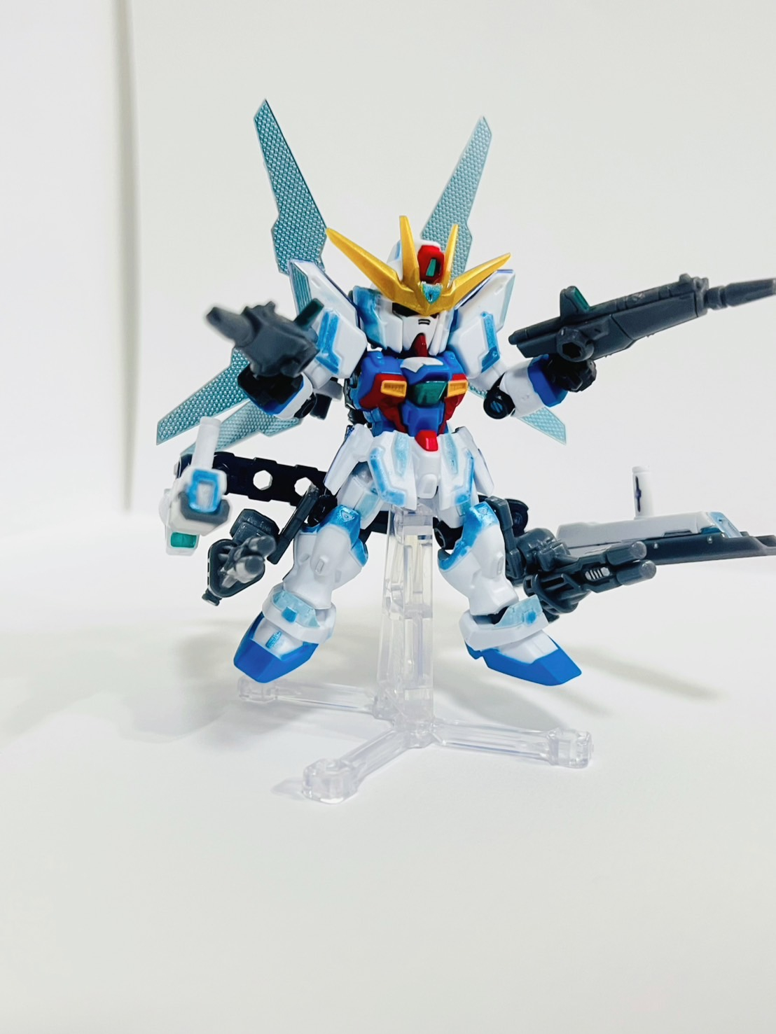 ツインサテライトキャノン🛰️を使用するための試験型です。背面のリアクターは3枚に増設され、フライトユニットとしても機能するため高い機動力も獲得している。