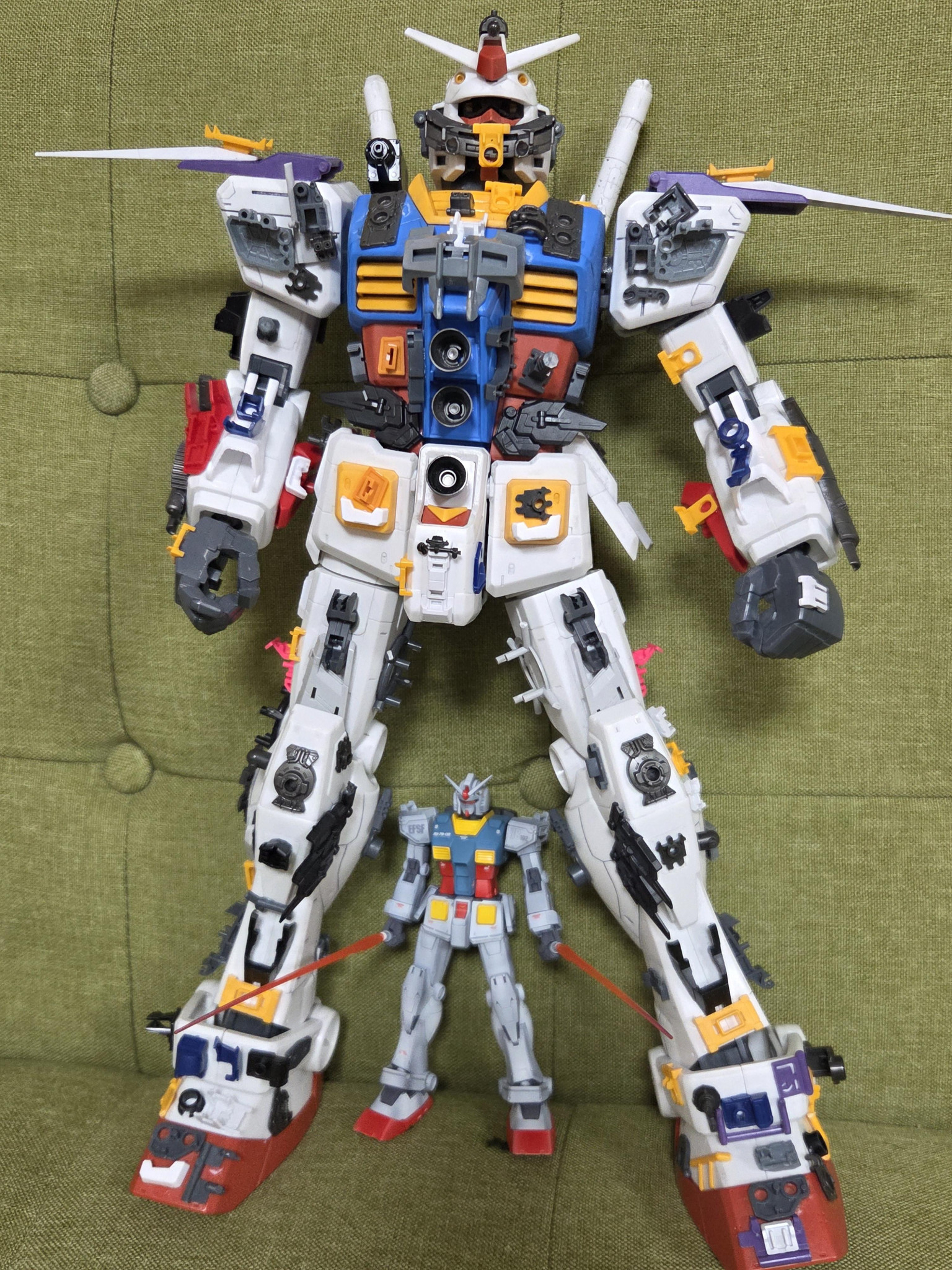1/144のオリジンガンダムと比べるとこのくらいの大きさの差があります(笑)