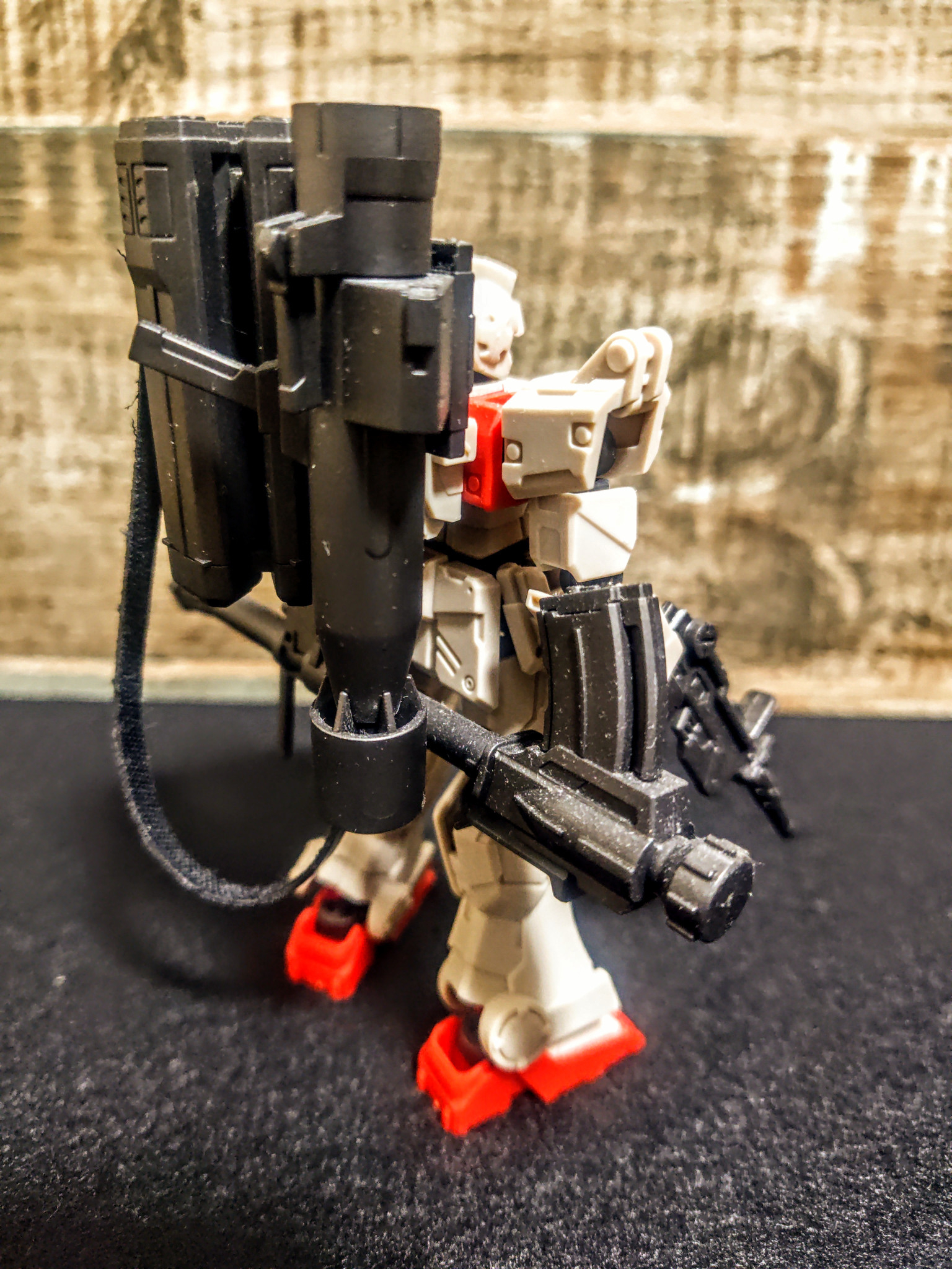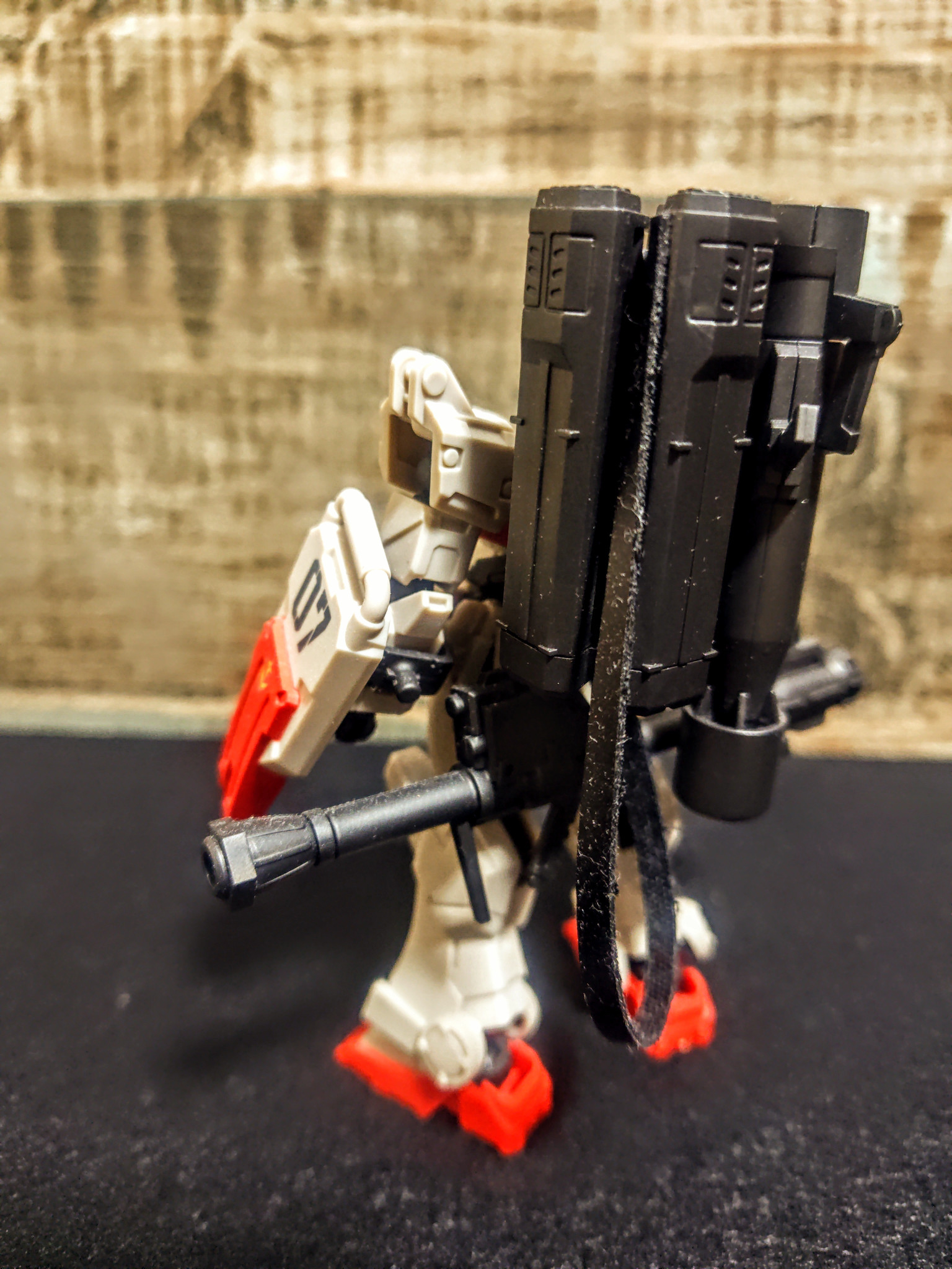 私にもわからんちんですが、陸戦型ゆえ、現地で使うロープ的なものを腰にマウント。その先をランチャーに繋いでいるようです。