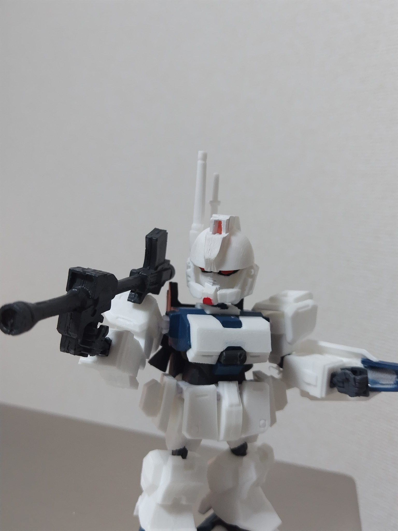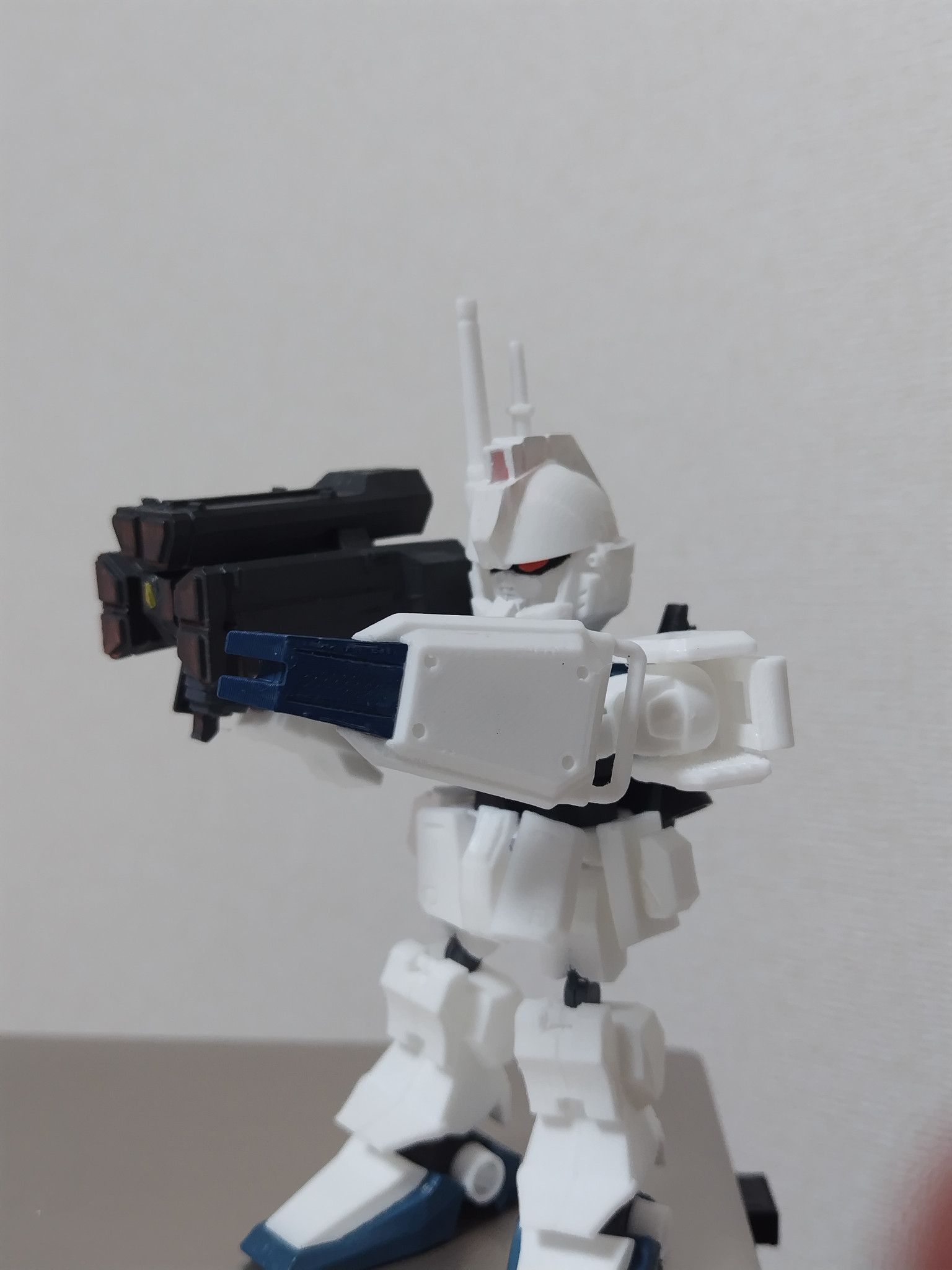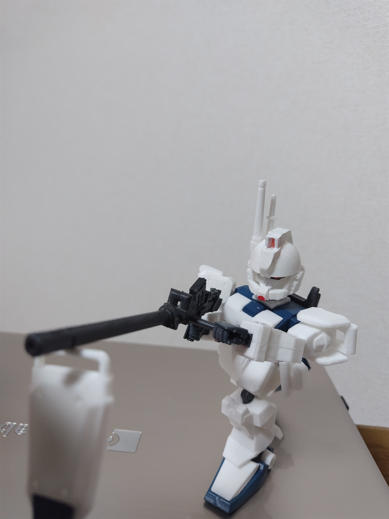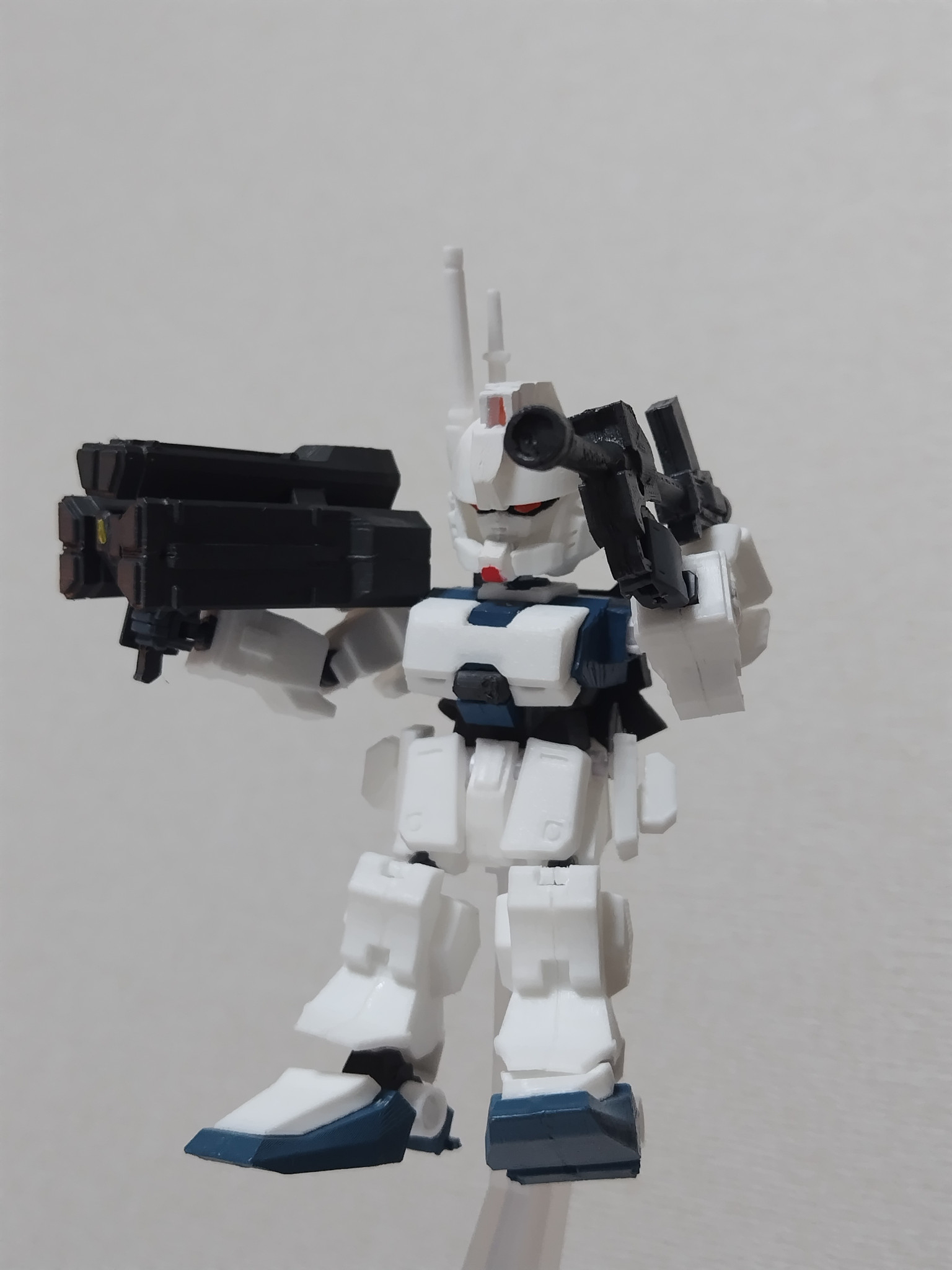08小隊がお好き?結構。ではますます好きになりますよ。さあさどうぞ。Ez8のMGSD(風)モデルです。よくできているでしょう?んああ仰らないで。ビーム兵器が無い、でもビームなんて見かけだけで戦場でリロード出来ないし、コストは高いわ、信頼性は無いわ、ろくな事はない。実弾なら大丈夫。弾薬もたっぷりありますよ、どんな戦場でも大丈夫。どうぞ撃ってみて下さい、いい音でしょう。余裕の音だ、火薬が違いますよ。