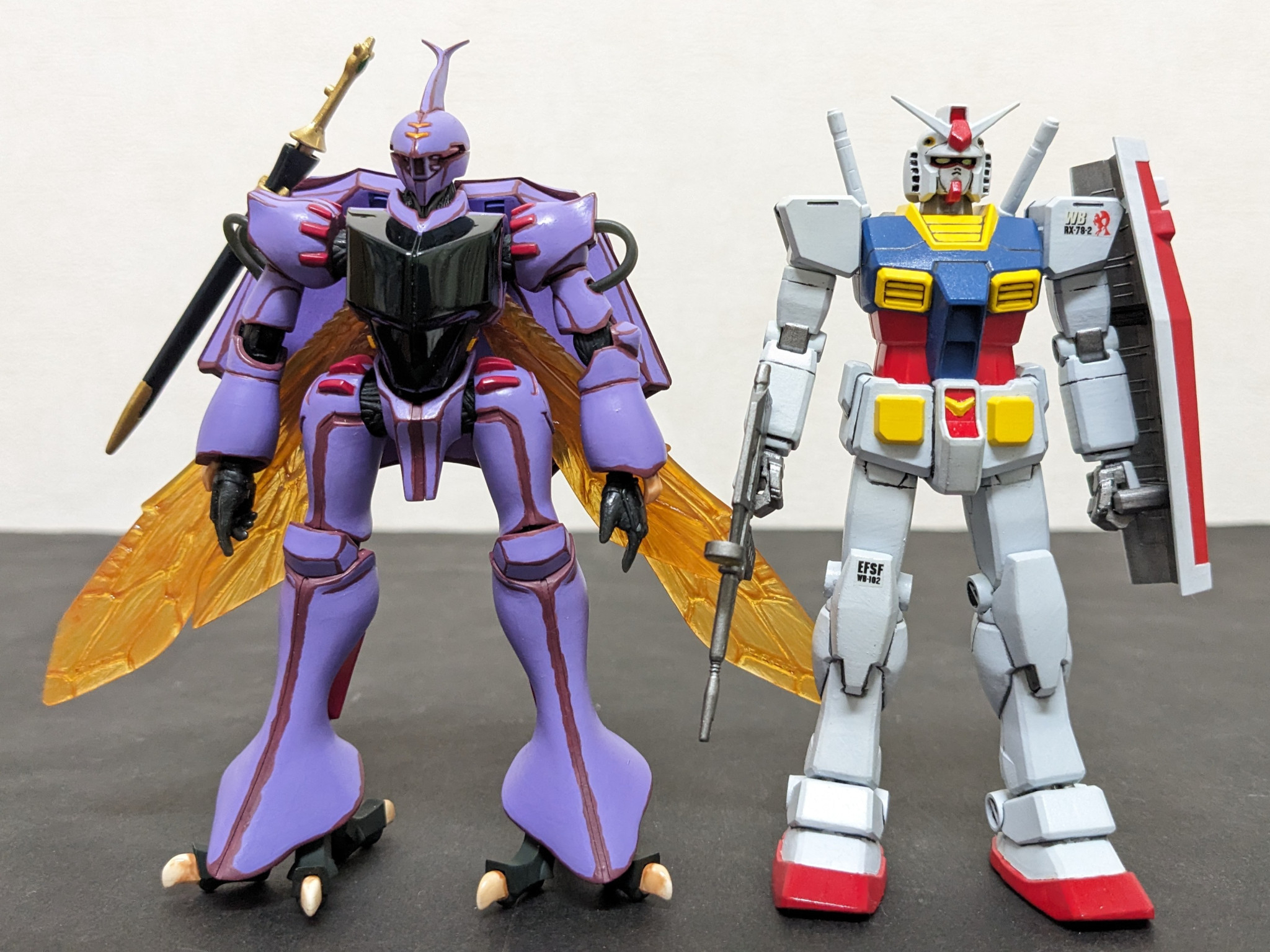 大体同じ頃に作ったHGダンバインと。一応、拙いながらも生物感出そうと思って筆塗りしてます。