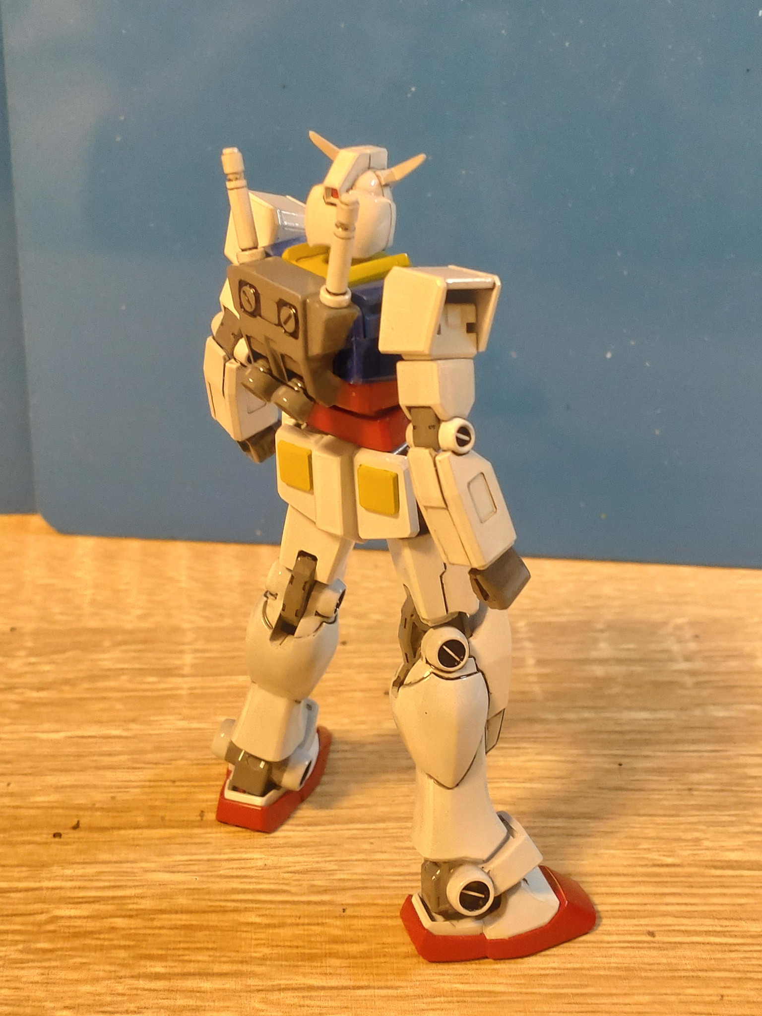 バックバックがバーニアと一体化なので少し手を加えてそれっぽくしました。あと、通常はグレーになるパーツが全て白かったので、そこも塗り分けました。膝から下と足首が同パーツなんですが、ここの塗り分けが一番大変だったかも^^;