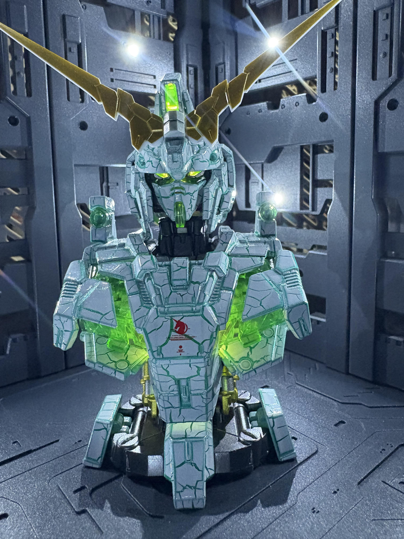 ichamun その他 2025.12/29更新 メカニカルバスト ユニコーンガンダム 88 44 いいねしたモデラー(44) 2 0 作品を共有 再販のかかったメカニカルバスト ユニコーンガンダムを購入製作しました。 デストロイモードルミナス点灯!クラック塗装は光の結晶体が漏れている様なイメージです。周りを暗くして撮影!サイコフレーム、光の結晶が漏れ漏れ!割れ目から光が漏れ出しています。ユニコーンモードは大理石塗装にチャレンジ!もーちょいウエットティッシュ粗めにすればよかったかな? メカニカルバスト ユニコーンガンダム クラック塗装 大理石塗装 デストロイモード ユニコーンモード コメント コメントをして応援しよう コメントにはログインが必要です ichamun 2時間前 コメントありがとうございます。 サイコフレームルミナスユニット無しでも蛍光塗料で光る様にできたらもっとよかったんですけどね。 与一 3時間前 迫力がありますね🩵 サイコフレームの光が毛細血管の様に張り巡らされて凄い❗のひと言です🤩🤩👍✨✨ ichamun よろしくお願いします。 ichamunさんがお薦めする作品 シン・マツナガ専用ケンプファー シナンジュフェイク マフティー・ナビーユ・エリン ガンダムMK -Ⅱ トクワン大尉モビルアーマ用クロー試験ドム 16 グフ フライトタイプ グフの日に滑り込み投稿しました。グフフライトタイプを塗装仕上… 15 EG RX-78F00/Eガンダム ロールアウトカラー EG RX-78F00/Eガンダムをスポンジ塗装でロールアウ… 8 リックドム ジークアクス版 ドムの日ではございませんが。 9月20日発売日のリックドムの購入目指し前進!開店5分後にお… 17 RGジオング スペシャルコーティングver 7月某日息子から超合金に興味あるかとの連絡があり、誕プレをく… ichamunさんのページ この作品をお薦め作品に設定する Please login to update your profile! Please login to update your profile! Please login to update your profile! Please login to update your profile!