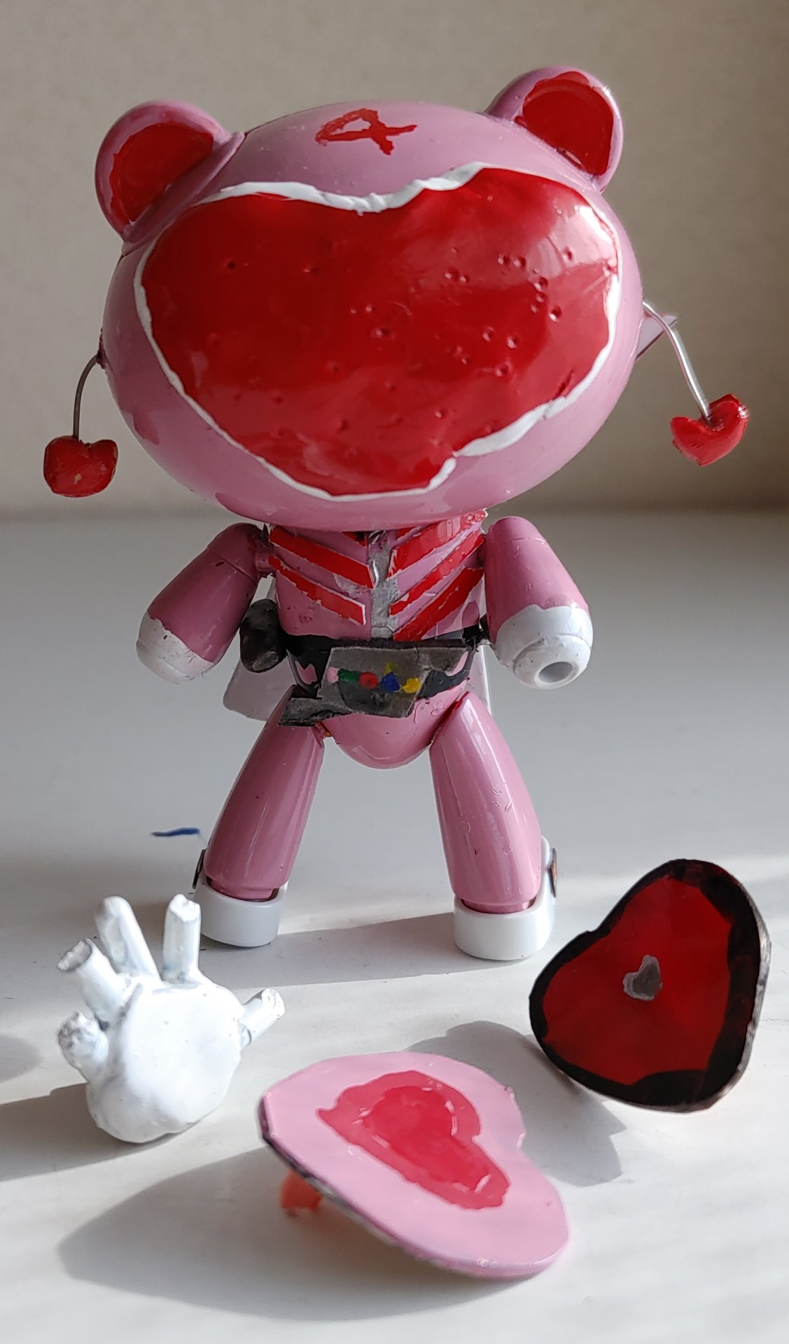 正面。パテは、顔のハートとイヤリング、腰のバーディーくらい。イヤリングとバーディーの接続は、針金。ベルトのバックルは、プラ板。