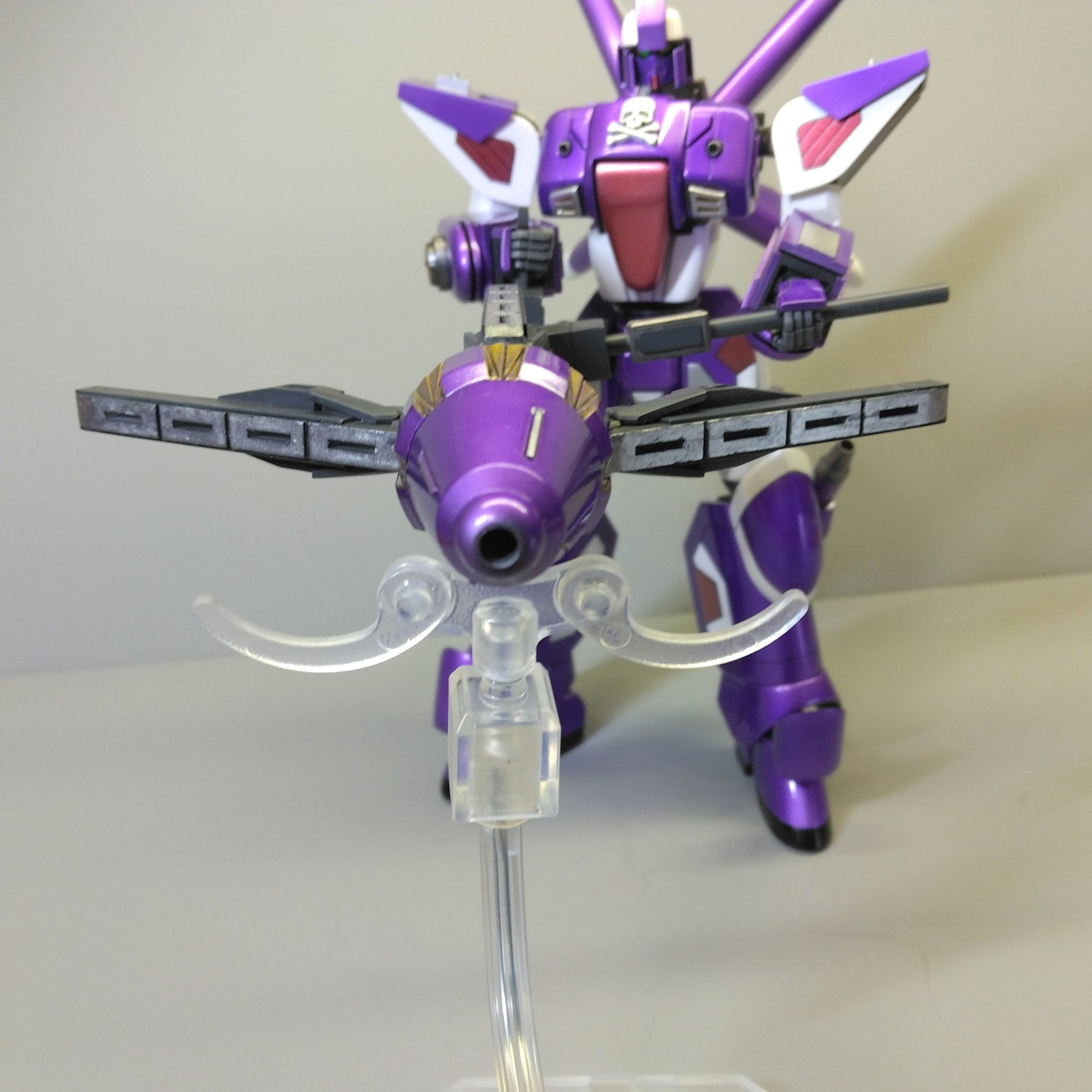 展開してX字方向にも同時に射撃が可能になります。ピーコックスマッシャーおよびクジャクを参考にした機能で、この形状から、”クロスボーンスマッシャー”と命名。