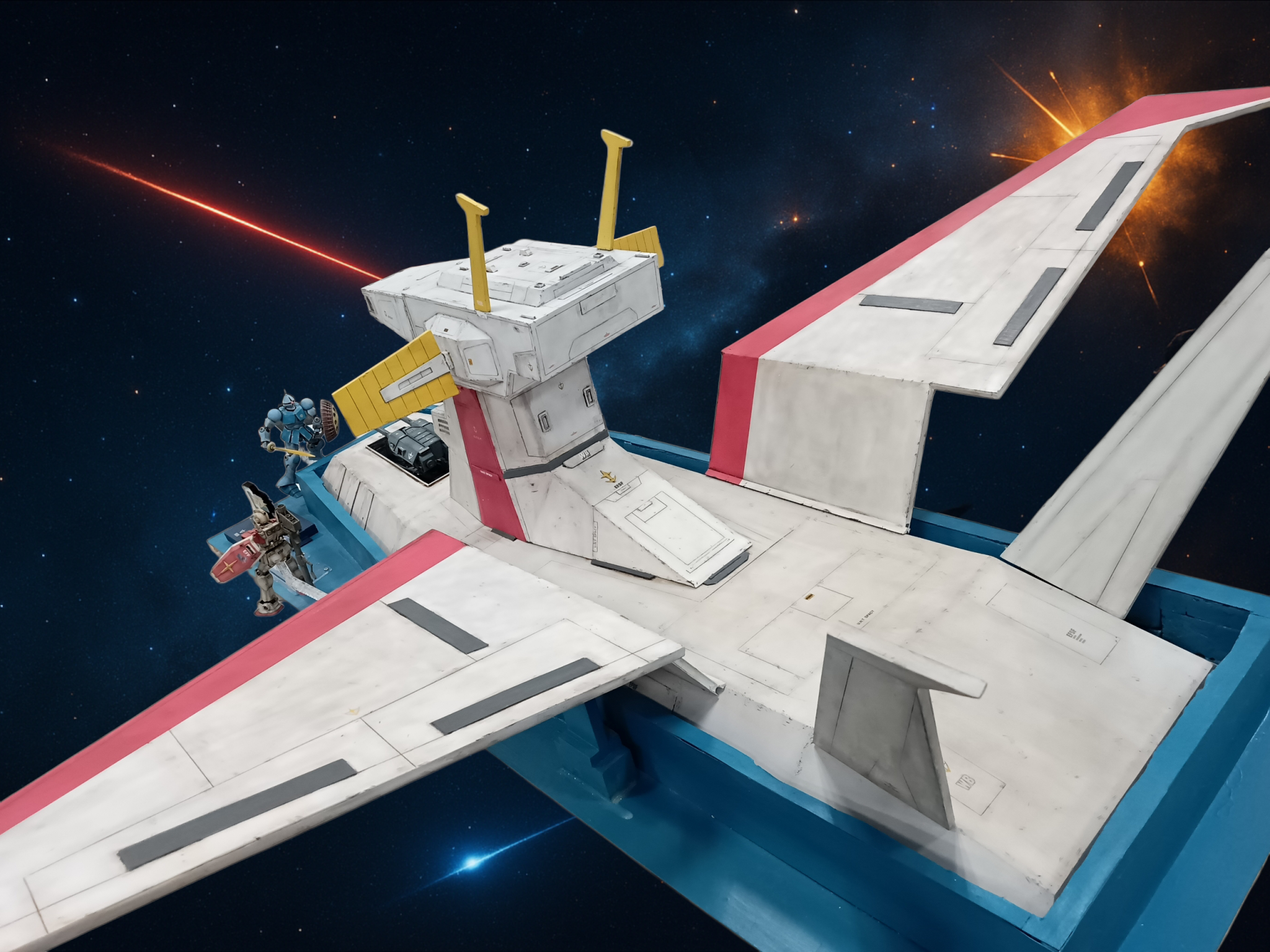 まるわ その他 2026.01/03更新 1/144 ホワイトベース デジタル背景によるスケール表現 488 139 いいねしたモデラー(139) 10 0 作品を共有 以前は展示ベースとして投稿したホワイトベースを、今回はデジタル背景で“艦”として見せてみました。 展示ベースとデジタル背景、どちらの見せ方が好みですか? バックショット。別角度&主砲収納状態。側面より。主砲のアップ。煽り気味のアングル。別背景で。 ガンプラ ガンプラ完成 ガンプラジオラマ ガンダム 一年戦争 ホワイトベース デジタル背景 デジラマ スケール表現 WhiteBase コメント コメントをして応援しよう コメントにはログインが必要です ペケペケ 2日前 いや〜素晴らしい作品ですね^ ^ まるわ 2日前 ペケペケさん、コメントありがとうございます😊 そう言ってもらえ、嬉しく、舞い上がっています。 これからも、よろしくお願いします😊 cinnamon-1 2日前 こちらも凄い作品ですね‼️ 圧巻の作品です‼️😆 まるわ 2日前 cinnamon-1さん、いつも励みになる、コメントありがとうございます😊 もったいない、お言葉嬉しく思います。 ame761224 2日前 どちらも好みです。 以前の作品は背景が黒でしたから、宇宙空間に見えました。煽り写真は迫力ありますね まるわ 2日前 ame761224さん、コメントありがとうございます😊 前の投稿も、気に入って頂けて嬉しいです。 煽り写真、密かに気に入ってたので、嬉しく思います。 与一 2日前 迫力ありますね🤩👍✨ ギャンに寄られると落ちますよ🤍😫 まるわ 2日前 与一さん、いつも、コメントありがとうございます😊 自分も、ここまで、ギャンに攻められると、落ちると思いますが、ギャンも大好きなんですよ。しかも、旧HGUC値段が、安いので。 T-Non 2日前 主砲にグッときます👍️👍️👍️ ホワイトベースに取り付くギャン‼️ 弾幕薄いぞ‼️ コレは良いモノを見せて頂きました😊 まるわ 2日前 T-Nonさん、いつも、コメントありがとうございます。 そう言ってもらえ、とても嬉しく思います。 これからも、よろしくお願いします😊 まるわ ガンプラとジオラマで一年戦争の情景を 1/144スケールで制作中🛠️ 模型初心者も一緒に楽しめる作品作りをしています。 note↓ https://note.com/t_maruwa_t/portal OFUSEで応援🙏https://ofuse.me/maruwa 下のリンクから X📱|YouTube🎥も確認お願いします🙇 YouTube ↓ 下のブログ用アイコンをクリック まるわさんがお薦めする作品 1/144 ホワイトベース 強行突破作戦 ジオラマ 7 アッガイ ジオン水泳部のアッガイを作成しました。 ディテールアップとデ… 9 ジム寒冷地仕様 今回はジム寒冷地仕様を製作しました。 量産機らしい無骨さと、… 6 HGUC ドム ジオンの重モビルスーツ、ドムを制作しました。黒背景を用いるこ… 10 グフ (筆塗り) グフの日という事でエコプラのグフを筆塗り(黒サフ後ドライブラ… まるわさんのページ この作品をお薦め作品に設定する Please login to update your profile! Please login to update your profile! Please login to update your profile! Please login to update your profile!