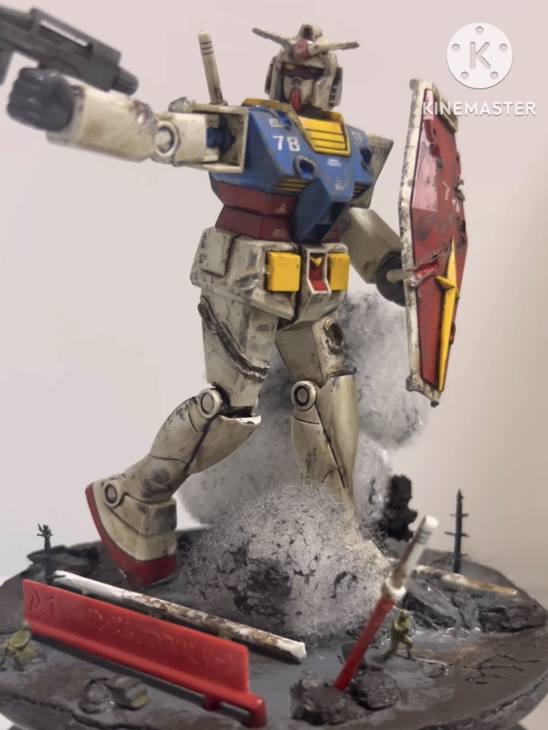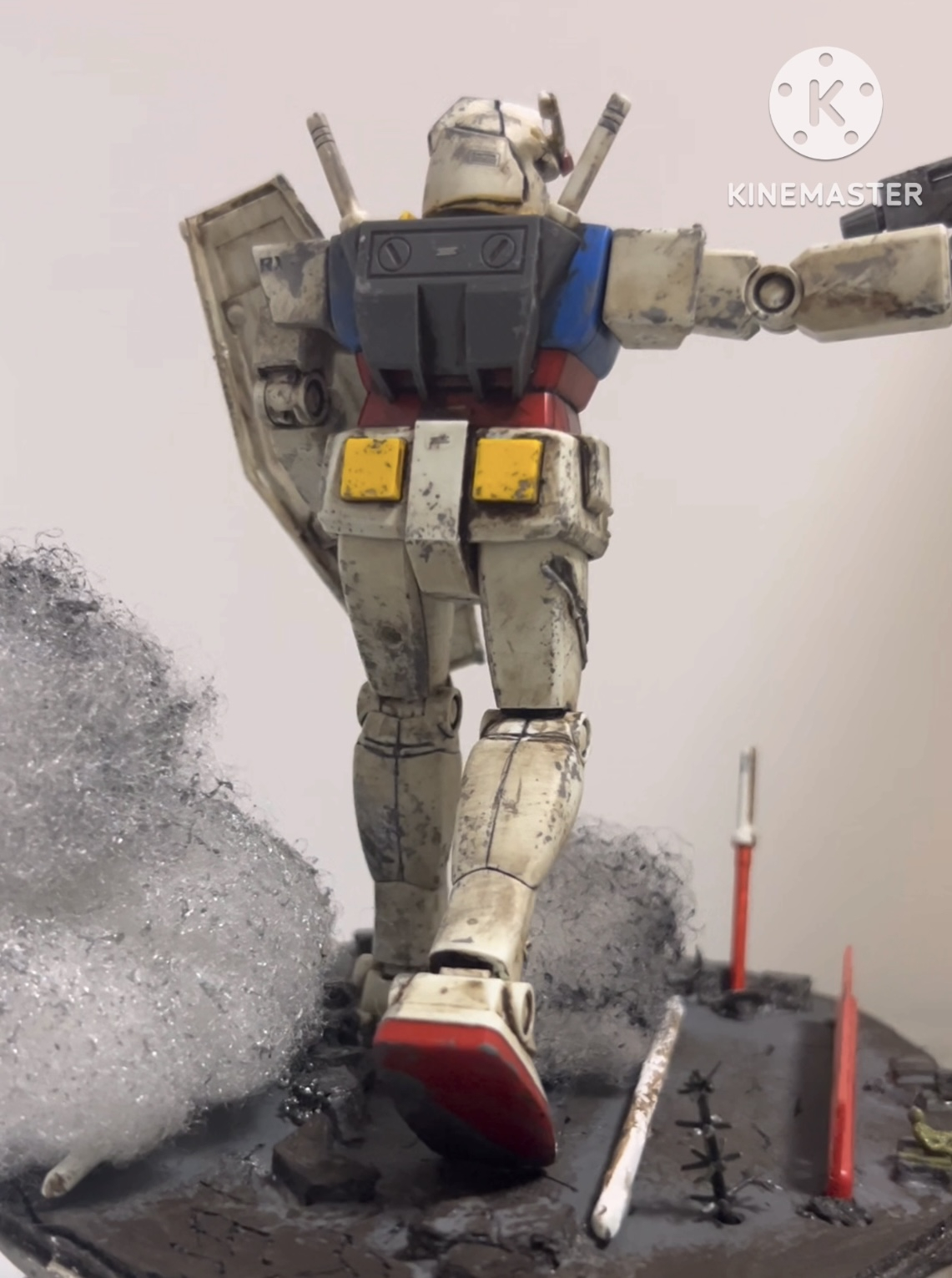 そして綿を使うことで煙を演出。臨場感を追求した形になった。地面にもドライブラシをしており、所々ヒビ割れを表現しています。