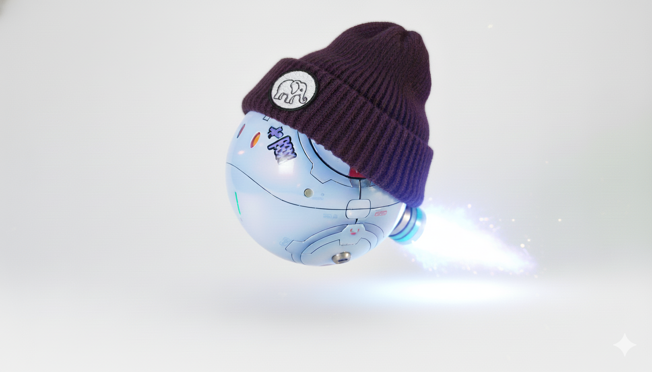 GQuuuuuuXのハロと言えば、これですよね。ちょっとワッペンの柄は適当ですが…。結構リアルな質感のニット帽を簡単に被せてくれるので、本当にAI画像生成はすごいです。(zaku-kao10)ついでにバーニアの噴射も追加してもらいました。