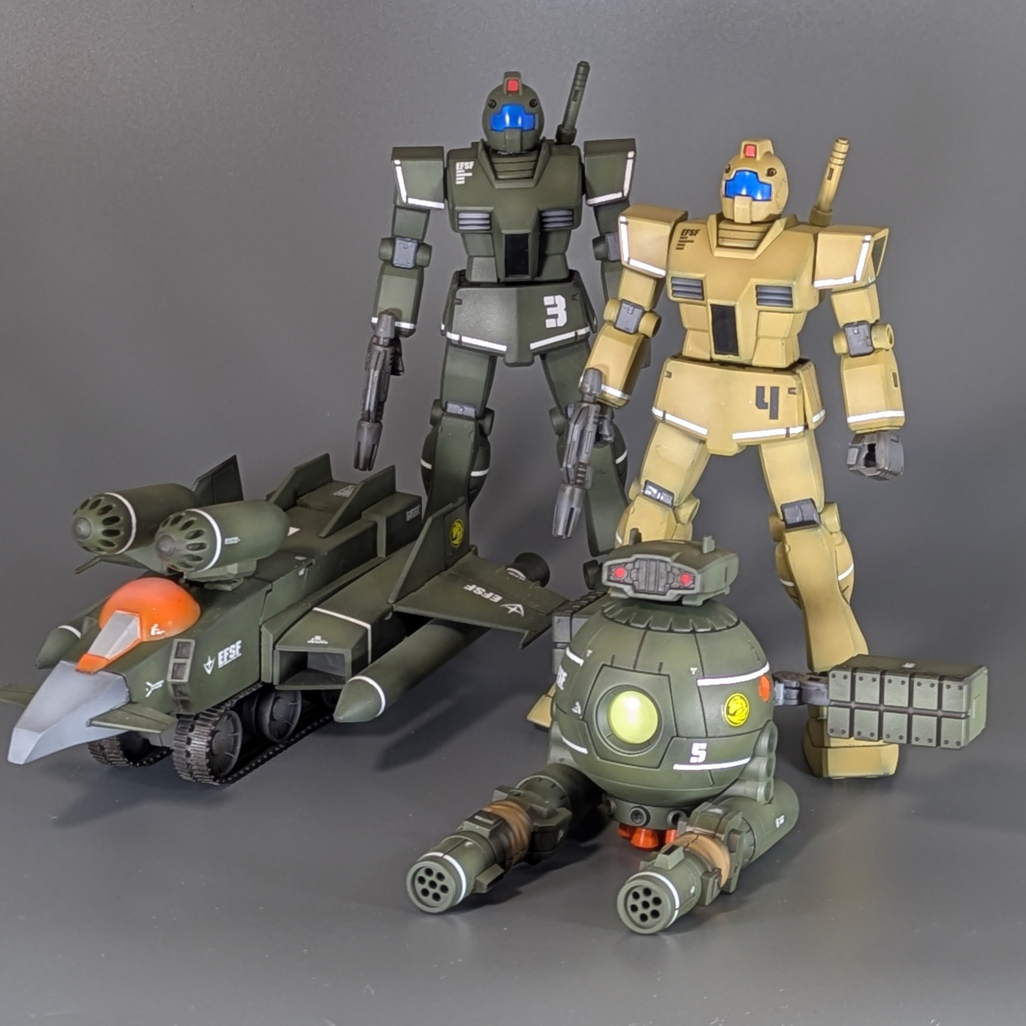 ジオンチームに続いて、連邦チームも渋いカラーリングで良い仕上がりですね😆👍