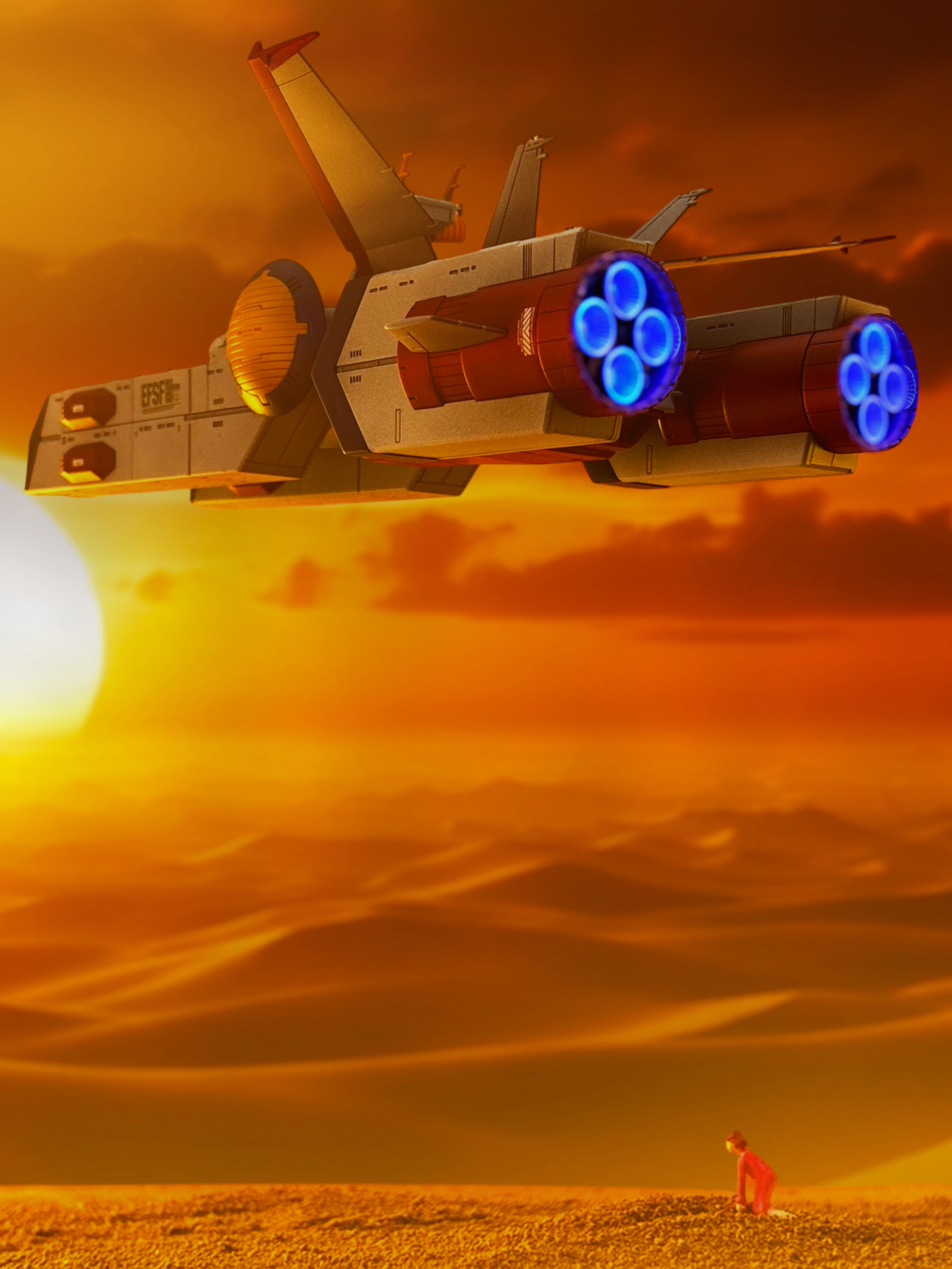 夕日に浮かぶホワイトベースの雄姿が泣かせます。👍